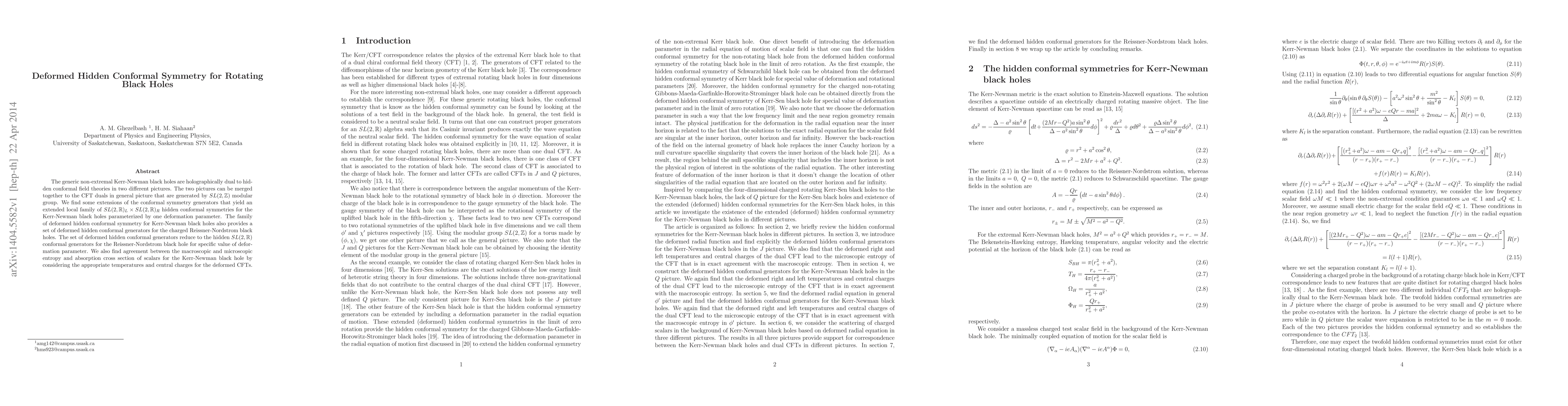 This paper explores the hidden conformal symmetries in rotating black holes, finding extended local symmetries for Kerr-Newman black holes using a deformation parameter. It shows agreement between macroscopic entropy and microscopic calculations for these black holes.