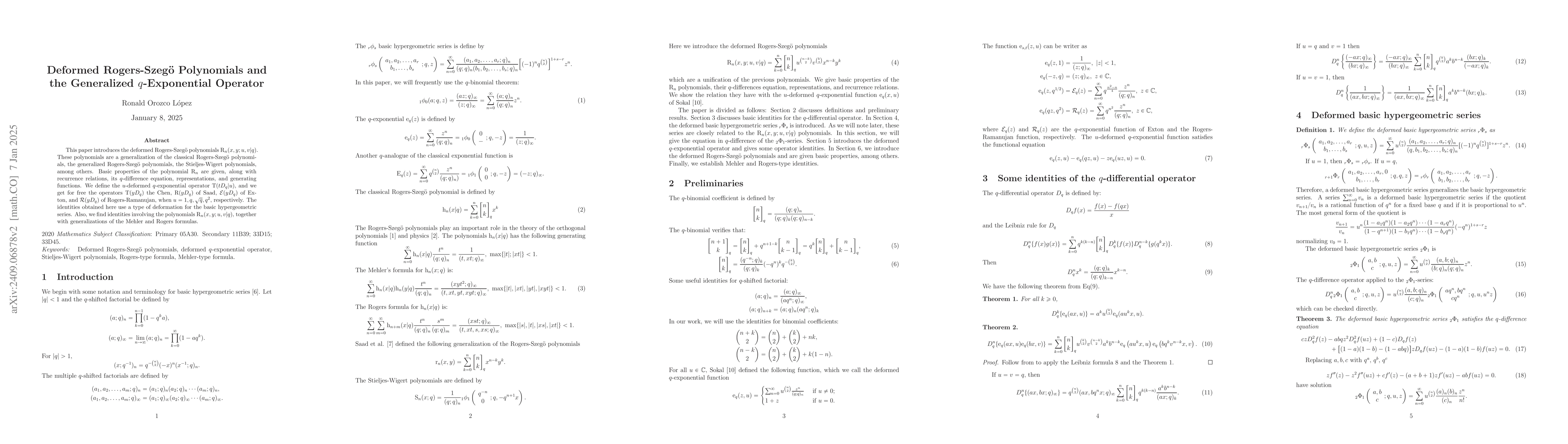 This article introduces the deformed homogeneous $(s,t)$-Rogers-Szeg\"o polynomials h$_{n}(x,y;s,t,u,v)$. These polynomials are a generalization of the Rogers-Szeg\"o polynomials and the $(p,q)$-Rogers-Szeg\"o polynomials defined by Jagannathan. By using the deformed $(s,t)$-exponential operator based on operator T$_{a}D_{s,t}$ we find identities involving the polynomials h$_{n}(x,y;s,t,u,v)$, together with generalizations of the Mehler and Rogers formulas. In addition, a generating function for the polynomials h$_{n}(x,y;s,t,u,v)$ is found employing the deformed $\frac{\varphi}{u}$-commuting operators. A representation of deformed $(s,t)$-exponential function as the limit of a sequence of deformed $(s,t)$-Rogers-Szeg\"o polynomials is obtained.