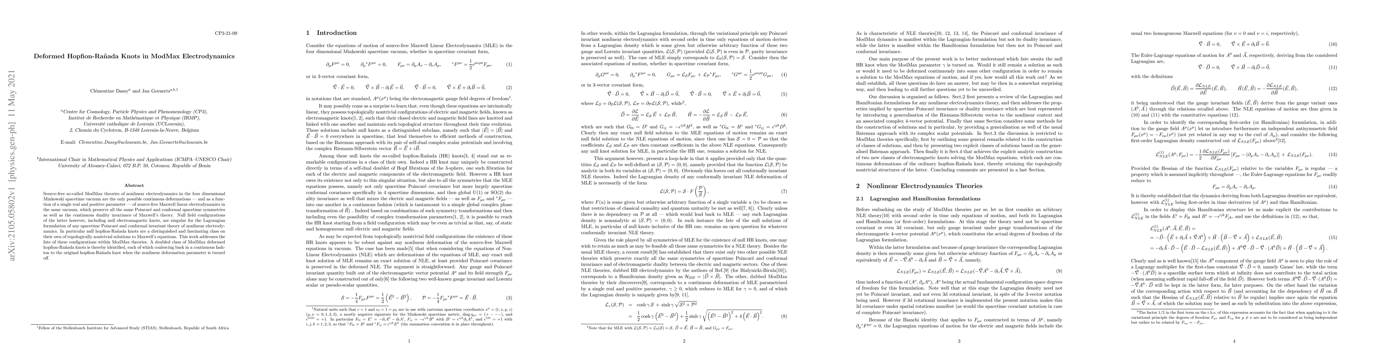 Researchers in ModMax electrodynamics found a new class of topologically nontrivial solutions called deformed hopfion-Ra\~nada knots that coalesce back into the original knot when the nonlinear deformation parameter is turned off.
