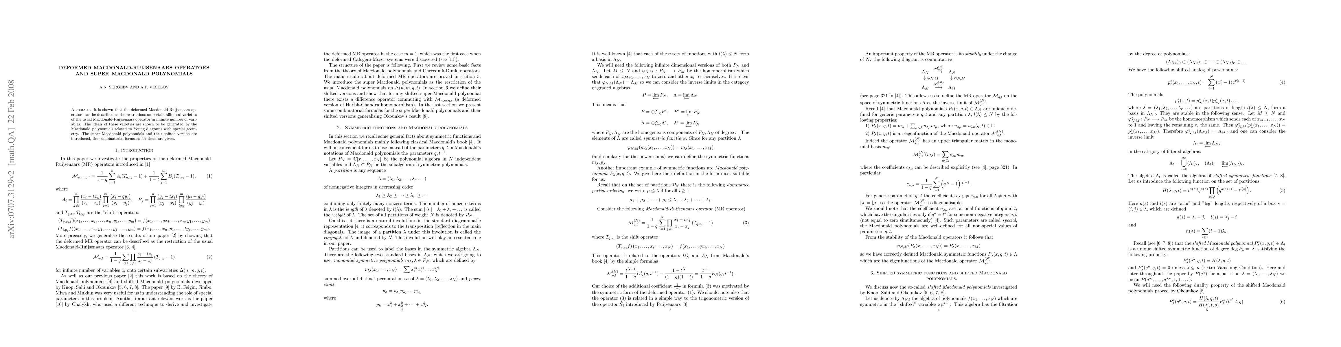 It is shown that the deformed Macdonald-Ruijsenaars operators can be described as the restrictions on certain affine subvarieties of the usual Macdonald-Ruijsenaars operator in infinite number of variables. The ideals of these varieties are shown to be generated by the Macdonald polynomials related to Young diagrams with special geometry. The super Macdonald polynomials and their shifted version are introduced, the combinatorial formulas for them are given.