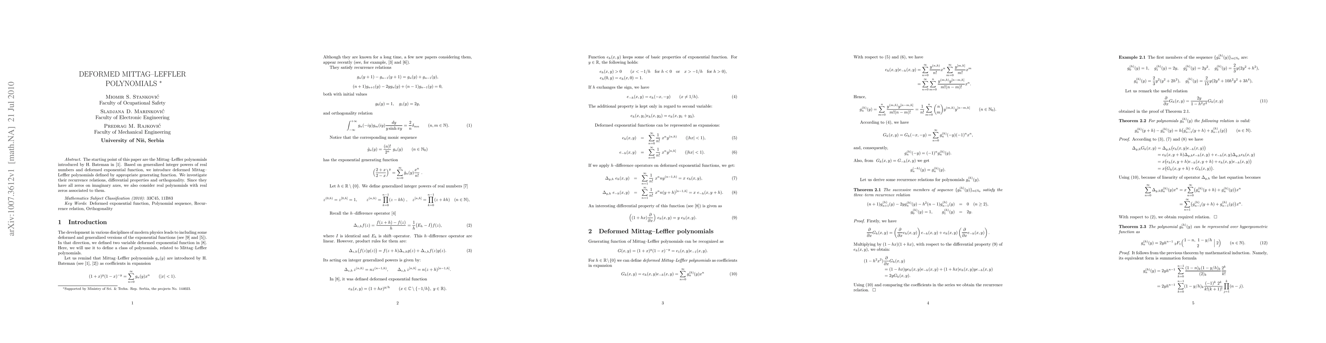 This paper introduces deformed versions of Mittag-Leffler polynomials using generalized integer powers and deformed exponential functions. It explores their recurrence relations, differential properties, and orthogonality, and discusses real polynomials with real zeros associated with them.