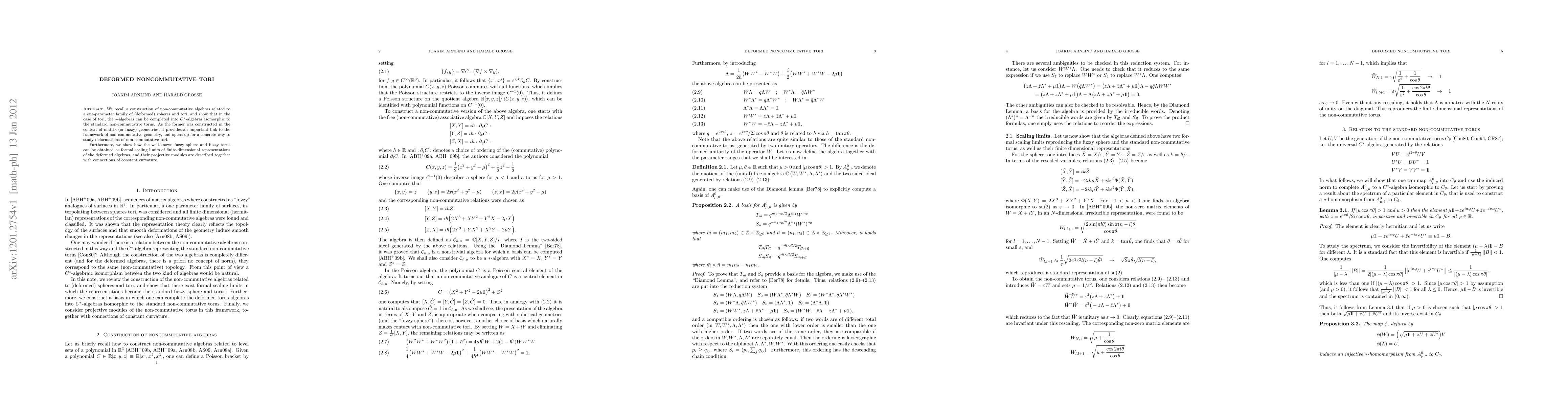 We recall a construction of non-commutative algebras related to a one-parameter family of (deformed) spheres and tori, and show that in the case of tori, the *-algebras can be completed into C*-algebras isomorphic to the standard non-commutative torus. As the former was constructed in the context of matrix (or fuzzy) geometries, it provides an important link to the framework of non-commutative geometry, and opens up for a concrete way to study deformations of non-commutative tori. Furthermore, we show how the well-known fuzzy sphere and fuzzy torus can be obtained as formal scaling limits of finite-dimensional representations of the deformed algebras, and their projective modules are described together with connections of constant curvature.