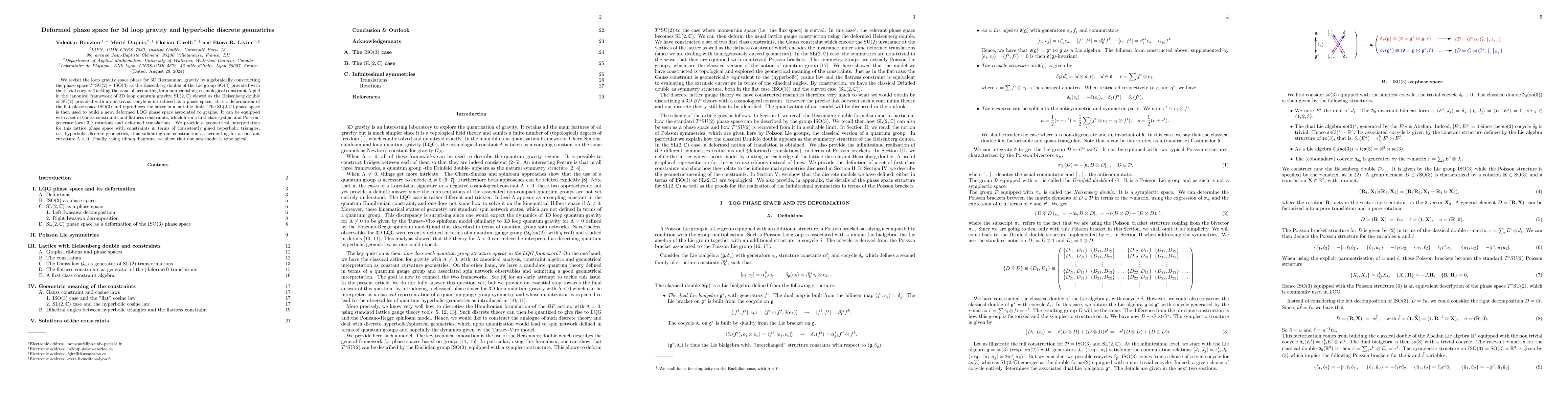 We revisit the loop gravity space phase for 3D Riemannian gravity by algebraically constructing the phase space $T^*\mathrm{SU}(2)\sim\mathrm{ISO}(3)$ as the Heisenberg double of the Lie group $\mathrm{SO}(3)$ provided with the trivial cocyle. Tackling the issue of accounting for a non-vanishing cosmological constraint $\Lambda \ne 0$ in the canonical framework of 3D loop quantum gravity, $\mathrm{SL}(2,\mathbb{C})$ viewed as the Heisenberg double of $\mathrm{SU}(2)$ provided with a non-trivial cocyle is introduced as a phase space. It is a deformation of the flat phase space $\mathrm{ISO}(3)$ and reproduces the latter in a suitable limit. The $\mathrm{SL}(2,\mathbb{C})$ phase space is then used to build a new, deformed LQG phase space associated to graphs. It can be equipped with a set of Gauss constraints and flatness constraints, which form a first class system and Poisson-generate local 3D rotations and deformed translations. We provide a geometrical interpretation for this lattice phase space with constraints in terms of consistently glued hyperbolic triangles, i.e. hyperbolic discrete geometries, thus validating our construction as accounting for a constant curvature $\Lambda<0$. Finally, using ribbon diagrams, we show that our new model is topological.
