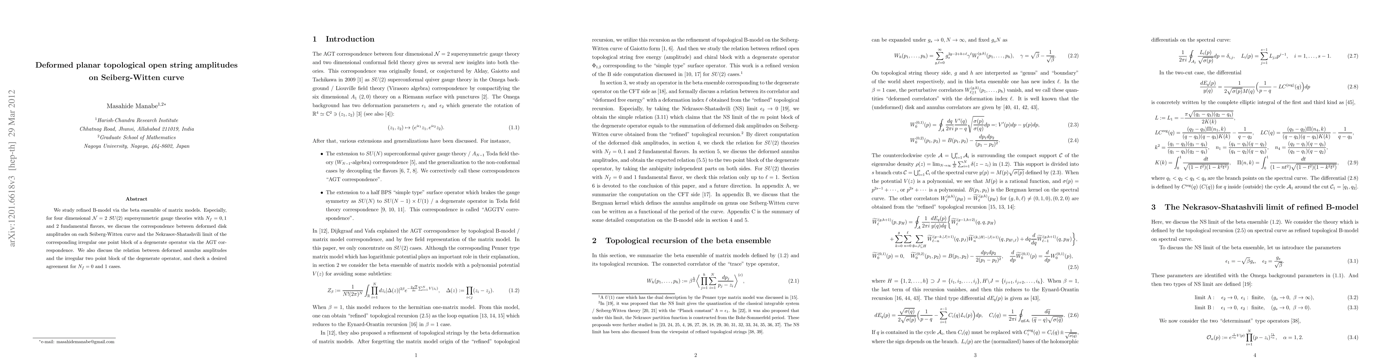 This paper examines the refined B-model using matrix models to study four-dimensional N=2 supersymmetric gauge theories. It explores the correspondence between deformed string amplitudes on Seiberg-Witten curves and the Nekrasov-Shatashvili limit, confirming the AGT correspondence for N_f=0 and N_f=1 cases.