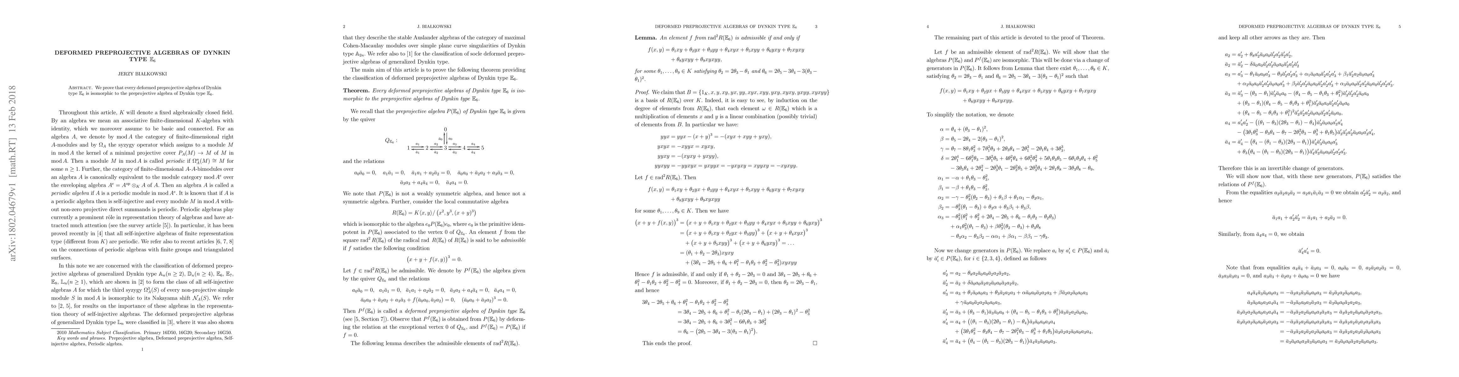 The development of a systematic method for constructing the deformed preprojective algebra for any generalized Dynkin type.