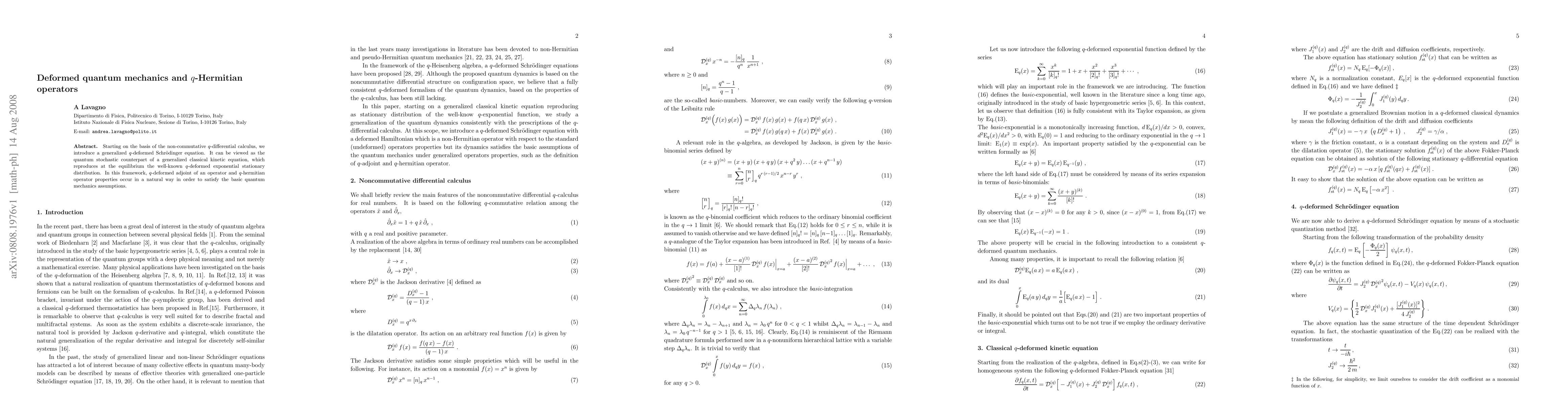 This paper introduces a generalized q-deformed Schrödinger equation based on non-commutative q-differential calculus, establishing a quantum stochastic counterpart to a classical kinetic equation. It also explores the properties of q-deformed adjoint and q-Hermitian operators within this framework.