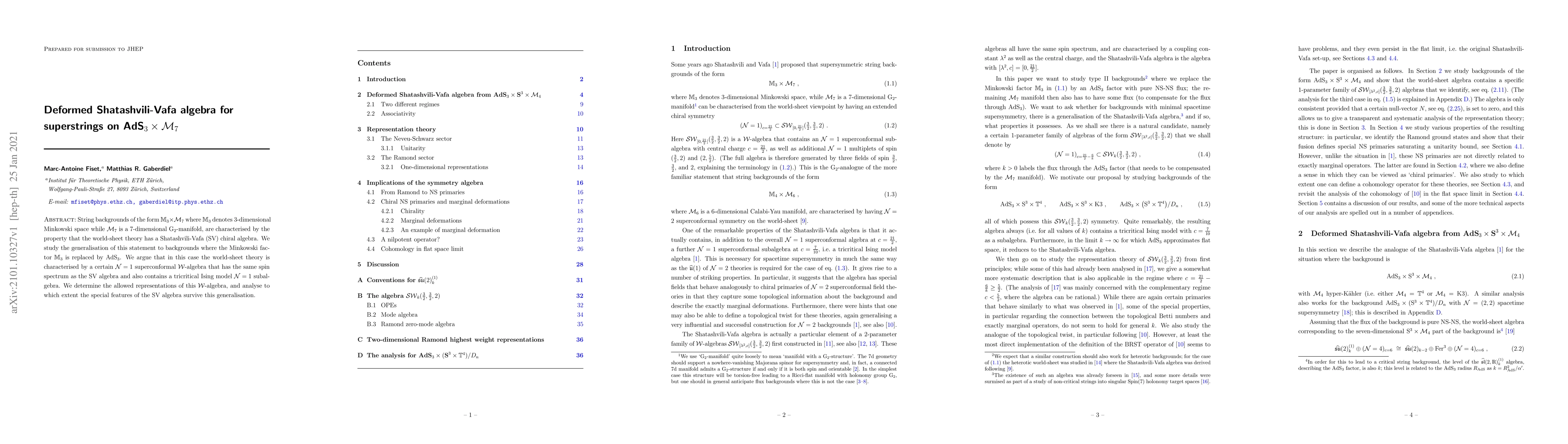 String backgrounds of the form $\mathbb{M}_3 \times {\cal M}_7$ where $\mathbb{M}_3$ denotes $3$-dimensional Minkowski space while ${\cal M}_7$ is a $7$-dimensional G$_2$-manifold, are characterised by the property that the world-sheet theory has a Shatashvili-Vafa (SV) chiral algebra. We study the generalisation of this statement to backgrounds where the Minkowski factor $\mathbb{M}_3$ is replaced by ${\rm AdS}_3$. We argue that in this case the world-sheet theory is characterised by a certain ${\cal N}=1$ superconformal ${\cal W}$-algebra that has the same spin spectrum as the SV algebra and also contains a tricritical Ising model ${\cal N}=1$ subalgebra. We determine the allowed representations of this ${\cal W}$-algebra, and analyse to which extent the special features of the SV algebra survive this generalisation.