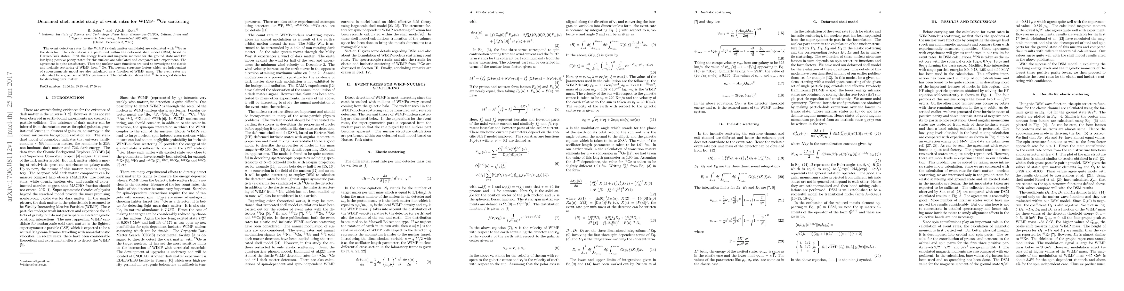 This paper calculates event detection rates for WIMP-$^{73}$Ge scattering using the deformed shell model, finding satisfactory agreement with experimental data. It concludes that $^{73}$Ge is a viable dark matter detector with calculated nuclear structure factors independent of specific supersymmetric models.