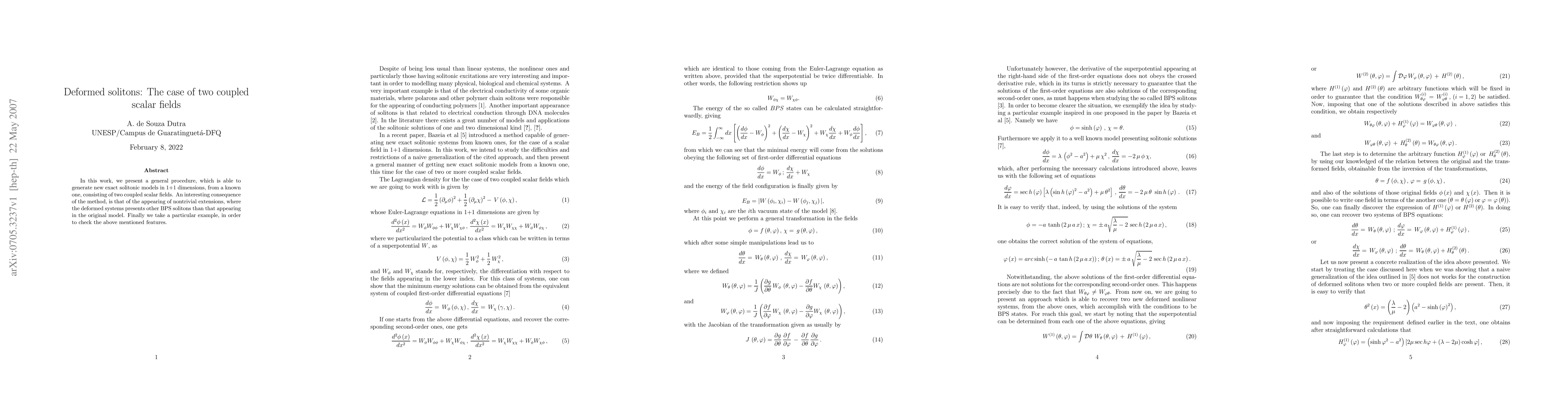 In this work, we present a general procedure, which is able to generate new exact solitonic models in 1+1 dimensions, from a known one, consisting of two coupled scalar fields. An interesting consequence of the method, is that of the appearing of nontrivial extensions, where the deformed systems presents other BPS solitons than that appearing in the original model. Finally we take a particular example, in order to check the above mentioned features.