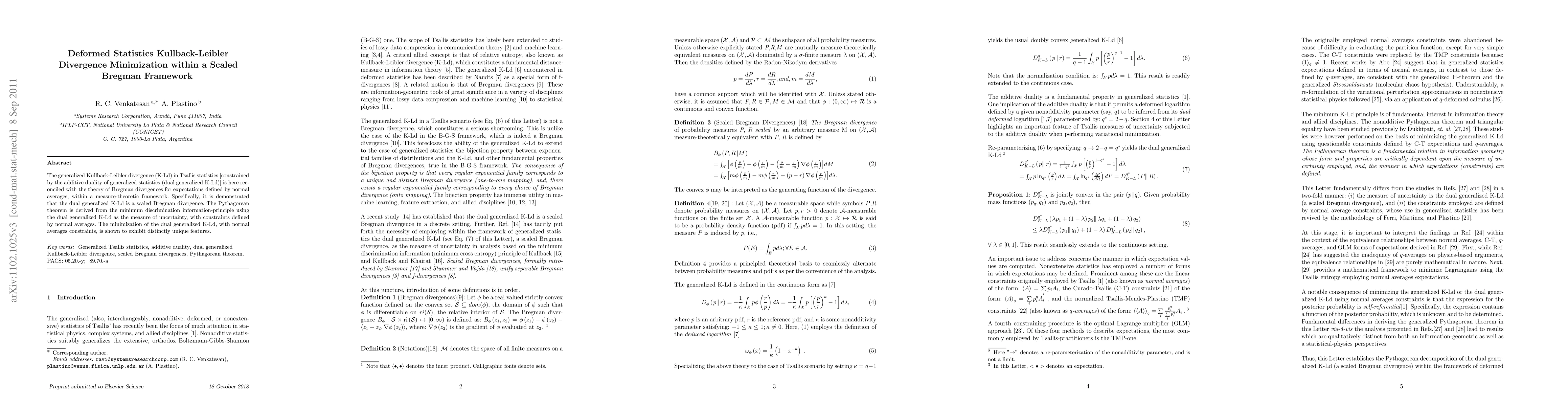 The paper presents a theoretical framework linking dual generalized K-Ld with scaled Bregman divergence and derives the Pythagorean theorem for normal average constraints.