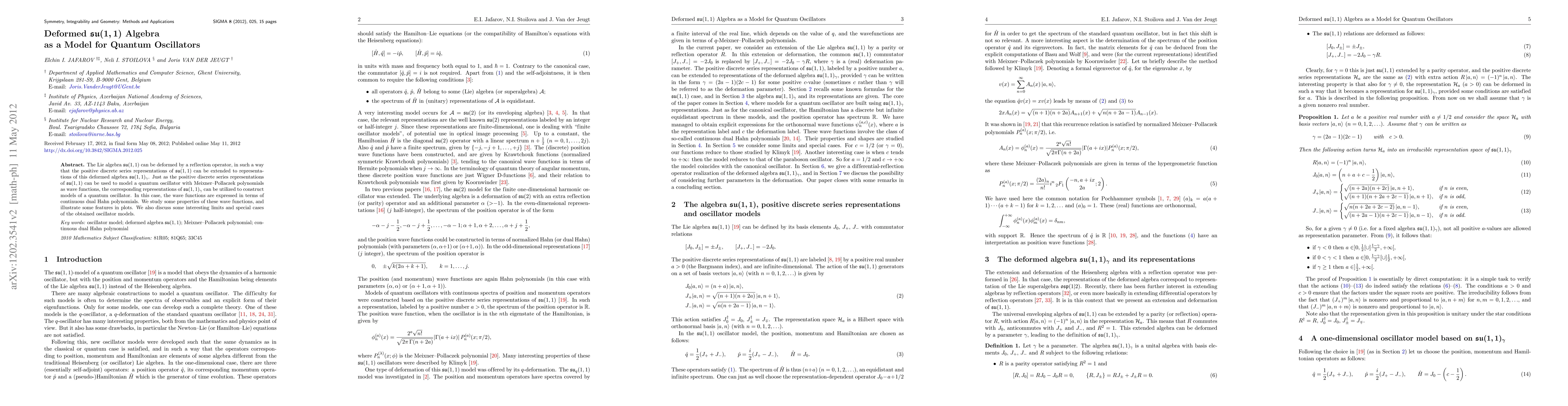 This paper explores a deformed $\mathfrak{su}(1,1)$ algebra, extending its positive discrete series representations to construct quantum oscillator models using continuous dual Hahn polynomials as wave functions. It examines properties of these wave functions and discusses special cases and limits of the resulting oscillator models.