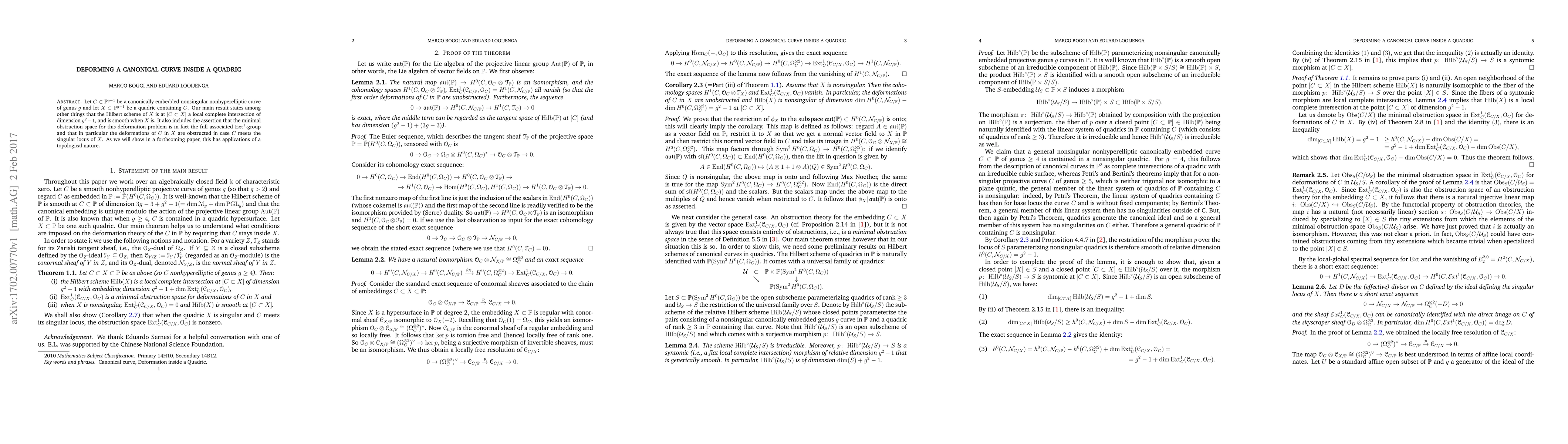 This paper investigates the deformation of a canonically embedded nonhyperelliptic curve $C$ inside a quadric $X$ in projective space. It demonstrates that the Hilbert scheme of $X$ is a local complete intersection of dimension $g^2-1$ and is smooth when $X$ is, and that deformations of $C$ in $X$ are obstructed if $C$ intersects the singular locus of $X$.