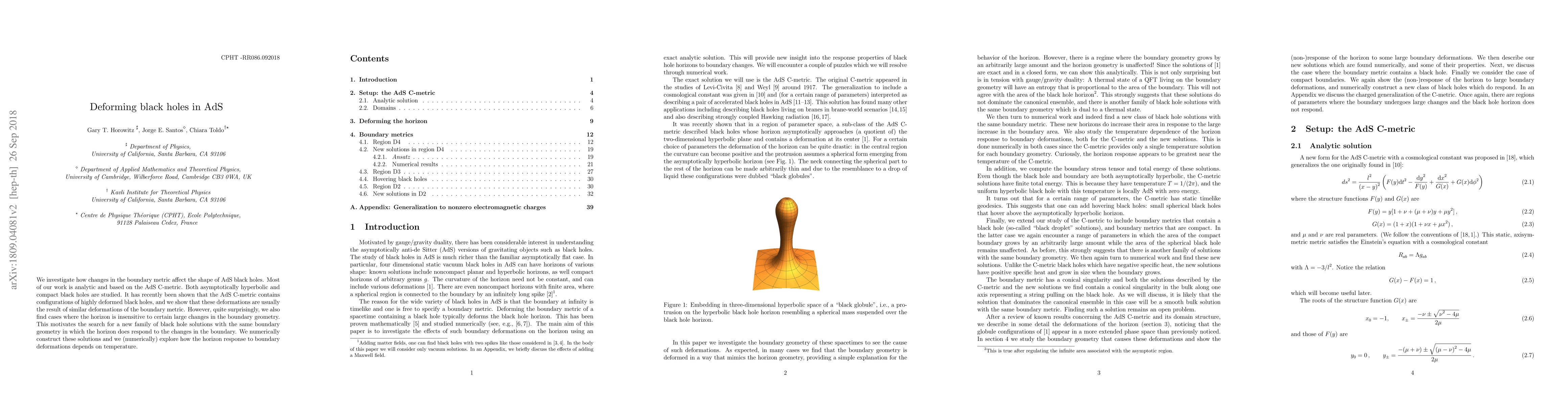 This paper analytically and numerically explores how variations in the boundary metric of Anti-de Sitter (AdS) space affect the shape of AdS black holes, particularly focusing on the AdS C-metric. It finds that while most deformations propagate to the black hole horizon, some changes leave the horizon unaffected, prompting the search for new black hole solutions that do respond to boundary geometry changes.