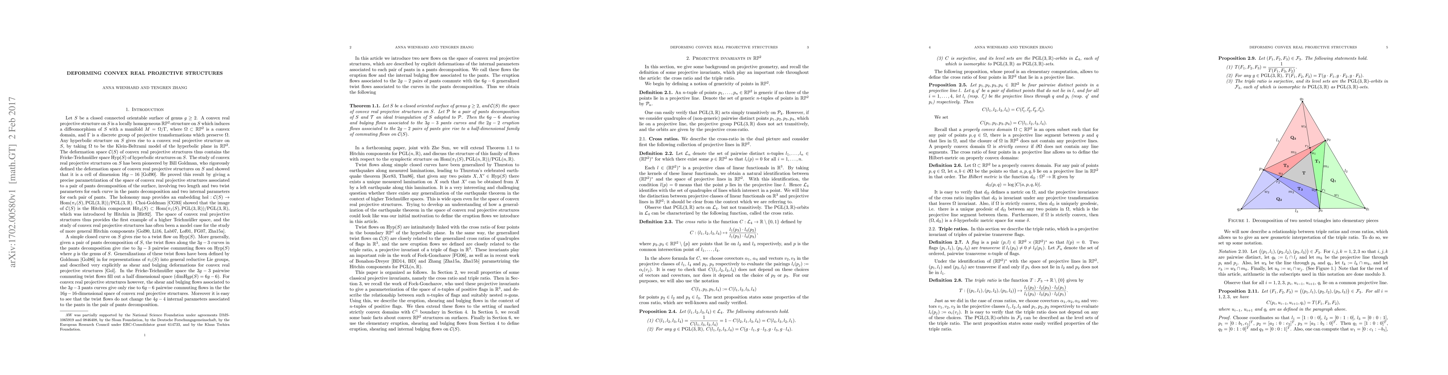 Let S be a closed, connected, orientable surface of genus at least 2, and let C(S) denote the deformation space of convex real projective structures S. In this article, we introduce two new flows on C(S), which we call the internal bulging flow and the eruption flow. These are geometrically defined flows associated to each pair of pants in a pants decomposition on S that deform the internal parameters. We show that the eruption flows, together with the generalized twist flows about the pants curves, give rise to a half-dimensional family of commuting flows on C(S).