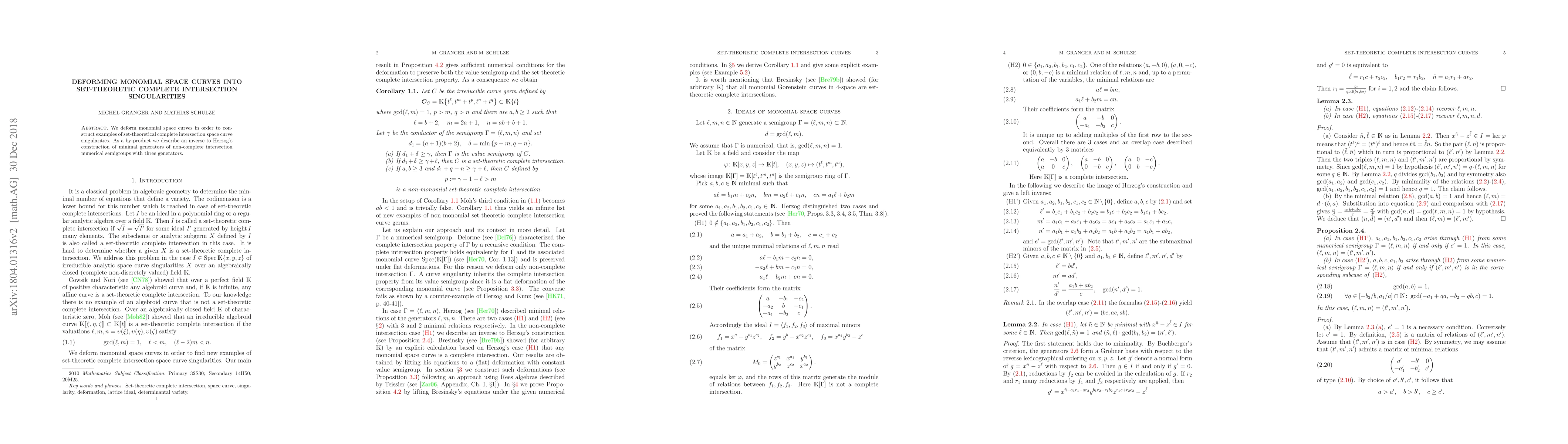 Summary: This paper explores the deformation of monomial space curves to create set-theoretic complete intersection singularities, and incidentally provides an inverse to Herzog's method for generating minimal generators of specific non-complete intersection numerical semigroups.