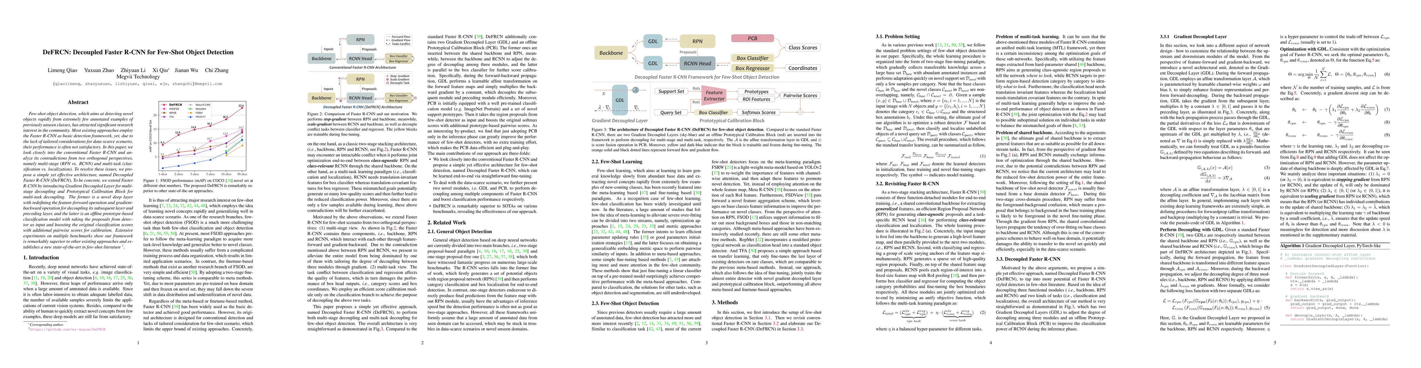 The paper proposes Decoupled Faster R-CNN (DeFRCN) to improve few-shot object detection by decoupling the multi-stage and multi-task processes in Faster R-CNN. The framework introduces Gradient Decoupled Layer and Prototypical Calibration Block to enhance performance, achieving state-of-the-art results on multiple benchmarks.