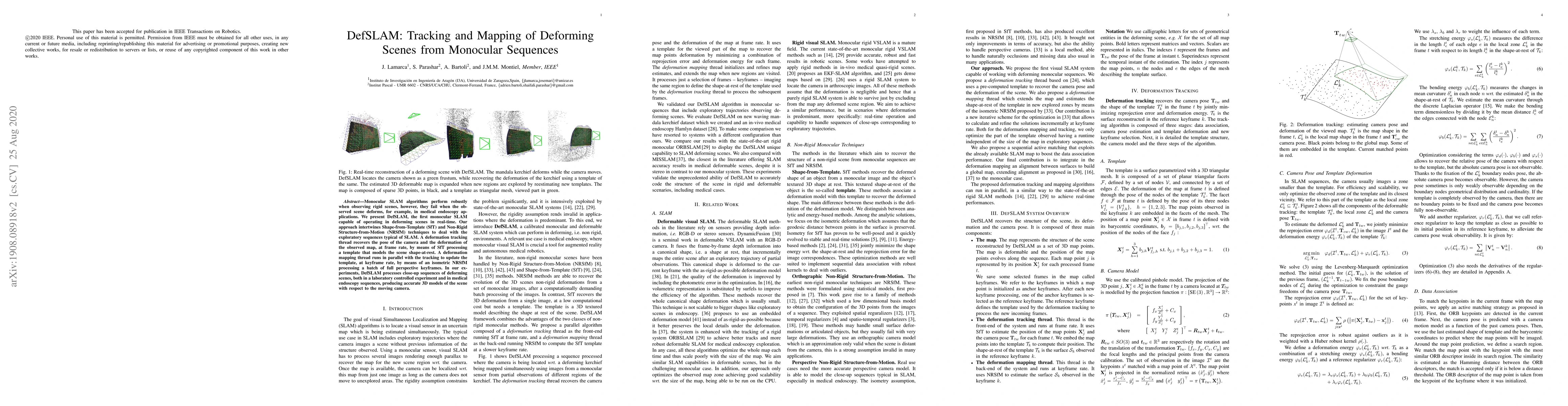 DefSLAM, a new monocular SLAM algorithm, successfully tracks and maps deforming scenes in real-time using Shape-from-Template and Non-Rigid Structure-from-Motion techniques.
