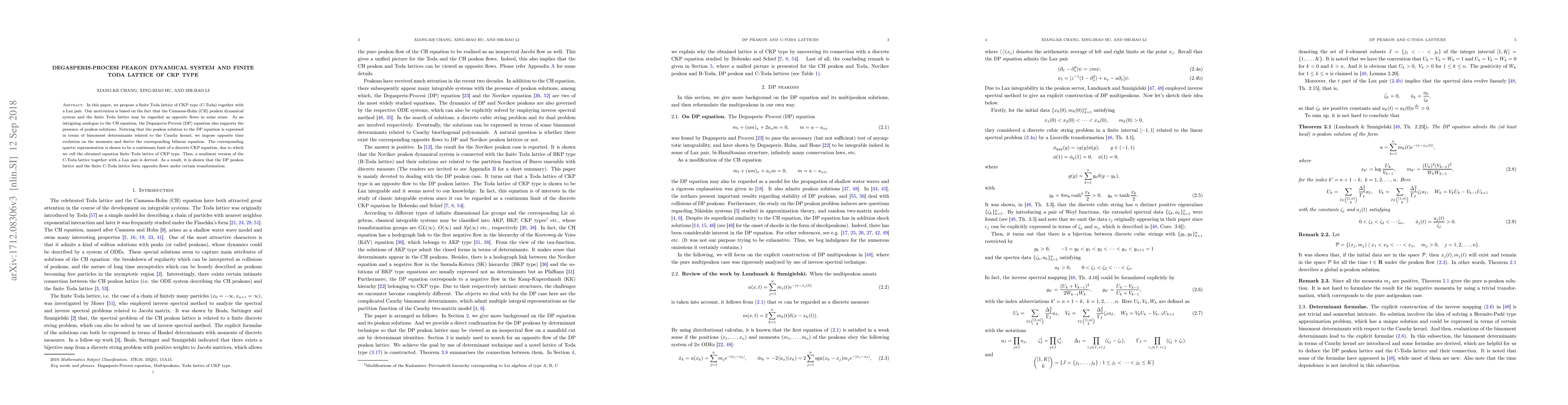 A new finite Toda lattice of CKP type is introduced as an analogue to the Camassa-Holm peakon dynamical system, with opposite time evolution for moments leading to a continuum limit of a discrete CKP equation.