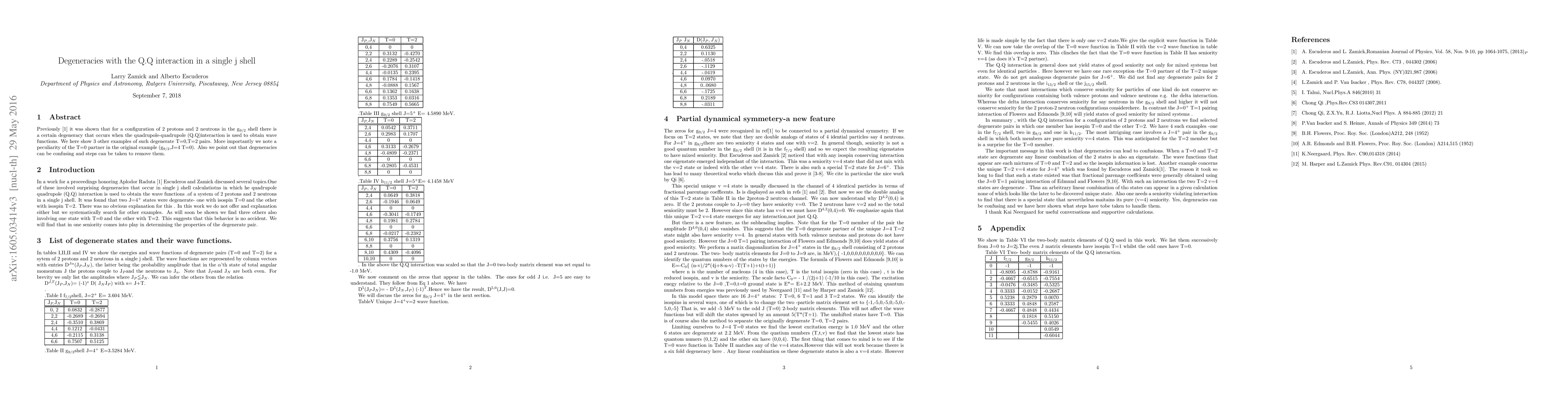 Previously [1] it was shown that for a configuration of 2 protons and 2 neutrons in the g_{9/2}shell there is a certain degeneracy that occurs when the quadrupole-quadrupole interaction (Q.Q) is used to to obtain the wave functions.. We here show 3 other examples of such degenerate pairs, all, as before, involving T=0 and T=2 states. . More important we discuss an unusual peculiarity of the original example. Also we point out that degeneracies can be confusing and steps can be taken to remove them.