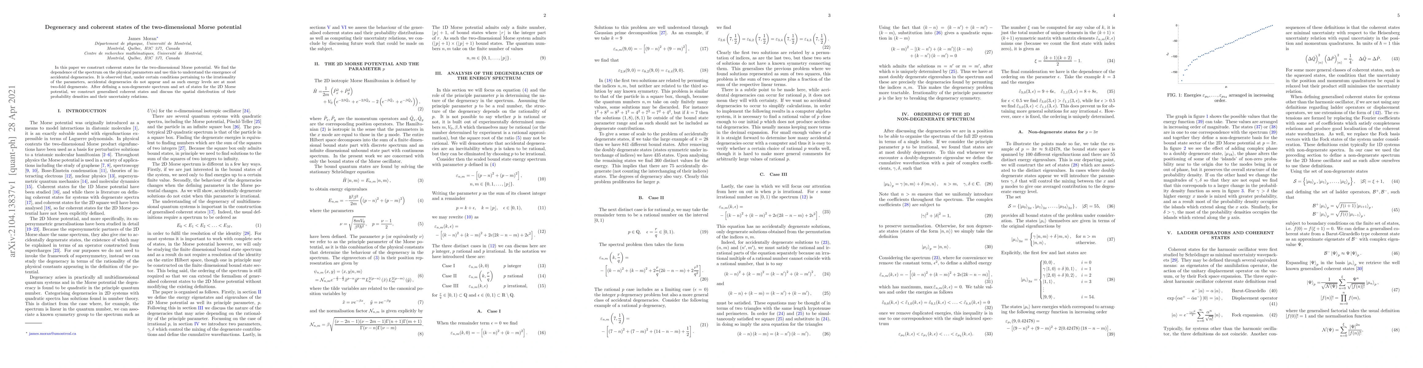 This paper constructs coherent states for the two-dimensional Morse potential, revealing that under specific irrational parameter conditions, energy levels are at most two-fold degenerate, avoiding accidental degeneracies. It also discusses the spatial distribution of these states and their associated uncertainty relations.