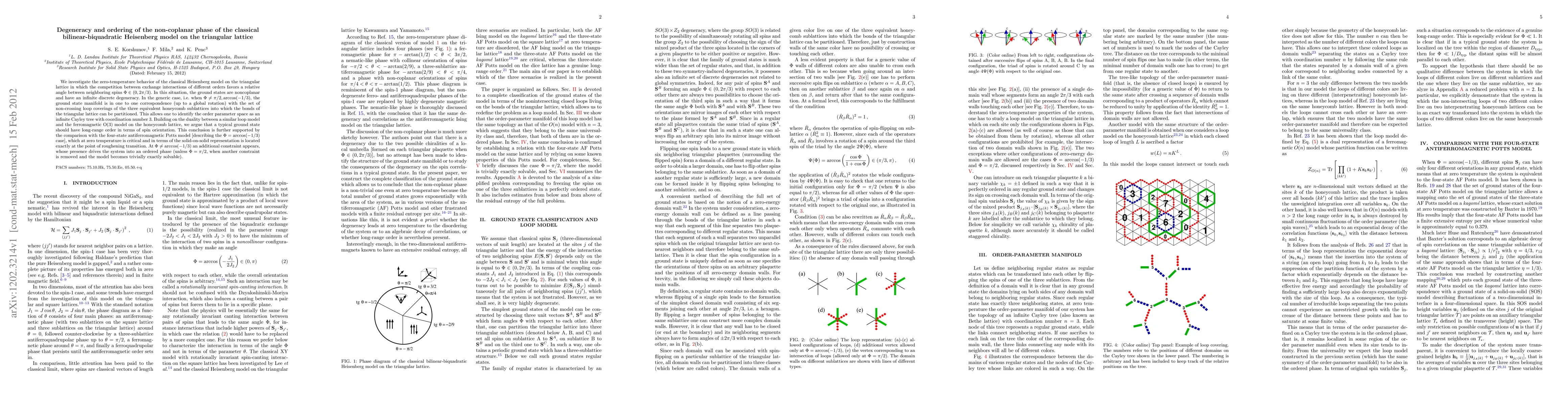 This paper explores the zero-temperature behavior of a classical Heisenberg model on a triangular lattice where non-coplanar ground states emerge due to competing exchange interactions. The ground states exhibit infinite degeneracy and long-range order, identified through loop coverings and comparisons with the antiferromagnetic Potts model.