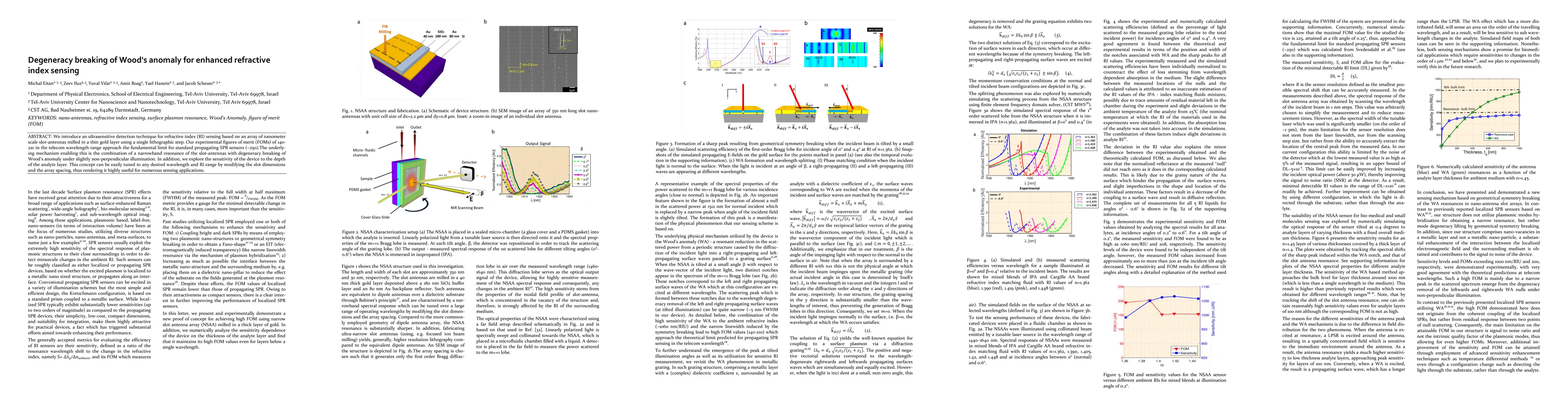 We introduce an ultrasensitive detection technique for refractive index (RI) sensing based on an array of nanometer scale slot-antennas milled in a thin gold layer using a single lithographic step. Our experimental figures of merit (FOMs) of 140-210 in the telecom wavelength range approach the fundamental limit for standard propagating SPR sensors (~250).The underlying mechanism enabling this is the combination of a narrowband resonance of the slot-antennas with degeneracy breaking of Wood anomaly under slightly non-perpendicular illumination. In addition, we explore the sensitivity of the device to the depth of the analyte layer. This concept can be easily tuned to any desired wavelength and RI range by modifying the slot dimensions and the array spacing, thus rendering it highly useful for numerous sensing applications.