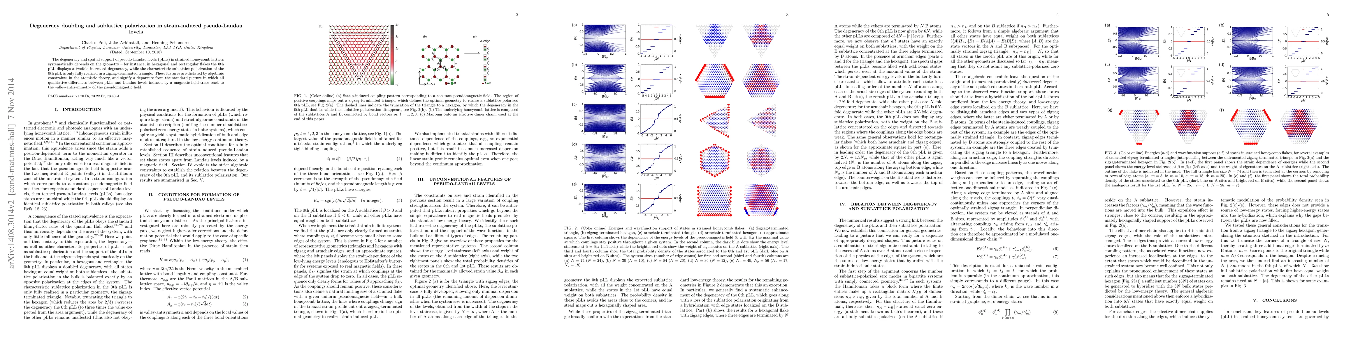 This paper investigates how strain in honeycomb lattices affects pseudo-Landau levels, revealing a twofold degeneracy increase in the 0th pLL for hexagonal and rectangular flakes, and complete sublattice polarization in zigzag-terminated triangles, challenging conventional views based on valley-antisymmetry.