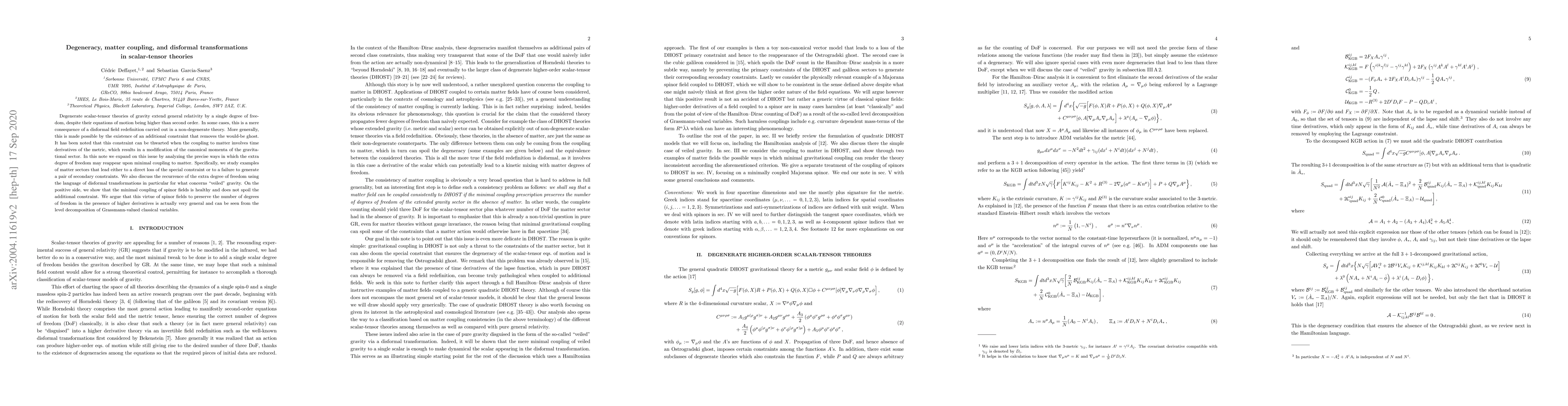 Degenerate scalar-tensor theories of gravity extend general relativity by a single degree of freedom, despite their equations of motion being higher than second order. In some cases, this is a mere consequence of a disformal field redefinition carried out in a non-degenerate theory. More generally, this is made possible by the existence of an additional constraint that removes the would-be ghost. It has been noted that this constraint can be thwarted when the coupling to matter involves time derivatives of the metric, which results in a modification of the canonical momenta of the gravitational sector. In this note we expand on this issue by analyzing the precise ways in which the extra degree of freedom may reappear upon minimal coupling to matter. Specifically, we study examples of matter sectors that lead either to a direct loss of the special constraint or to a failure to generate a pair of secondary constraints. We also discuss the recurrence of the extra degree of freedom using the language of disformal transformations in particular for what concerns "veiled" gravity. On the positive side, we show that the minimal coupling of spinor fields is healthy and does not spoil the additional constraint. We argue that this virtue of spinor fields to preserve the number of degrees of freedom in the presence of higher derivatives is actually very general and can be seen from the level decomposition of Grassmann-valued classical variables.