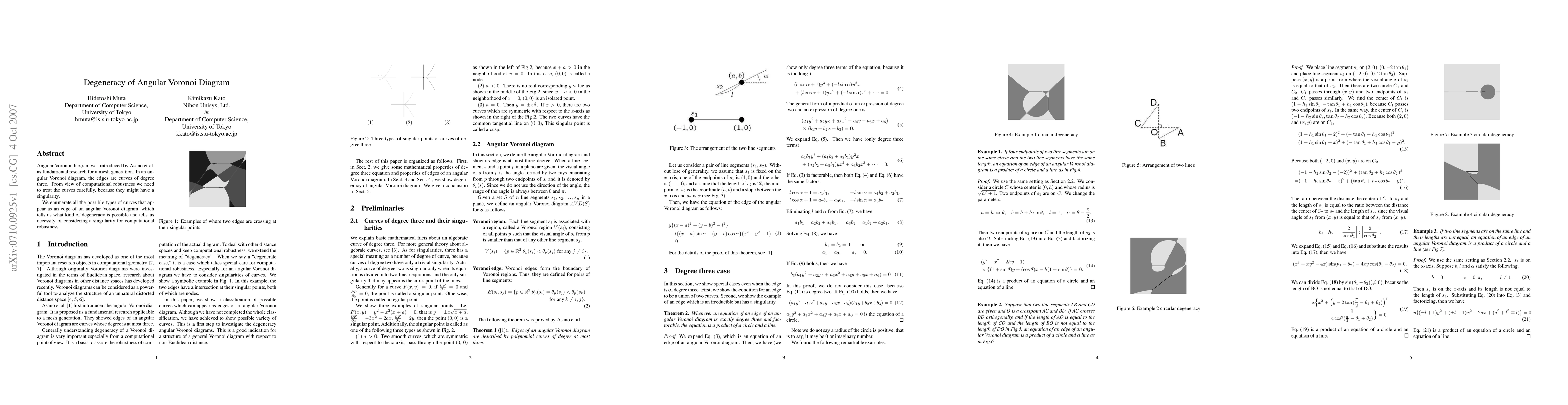 This paper investigates the degeneracy of angular Voronoi diagrams, identifying all possible types of degree-three curve edges and their singularities, emphasizing the need for computational robustness in handling these complexities.