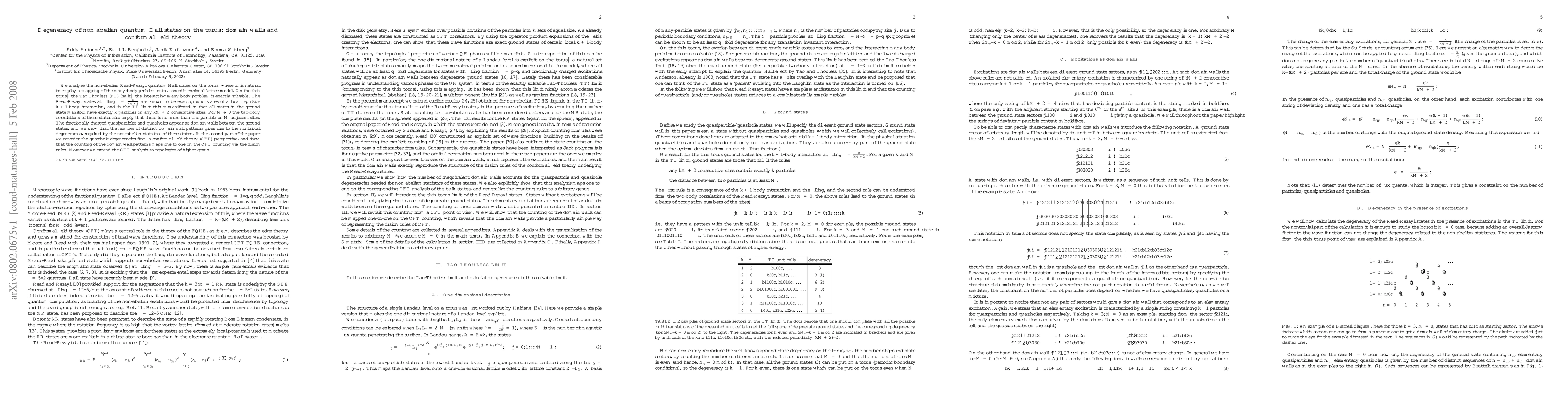 This paper explores the degeneracy of non-abelian Read-Rezayi quantum Hall states on the torus, demonstrating that domain wall patterns between ground states correspond to quasiparticle degeneracies. It also connects these patterns to conformal field theory via fusion rules, extending the analysis to higher genus topologies.
