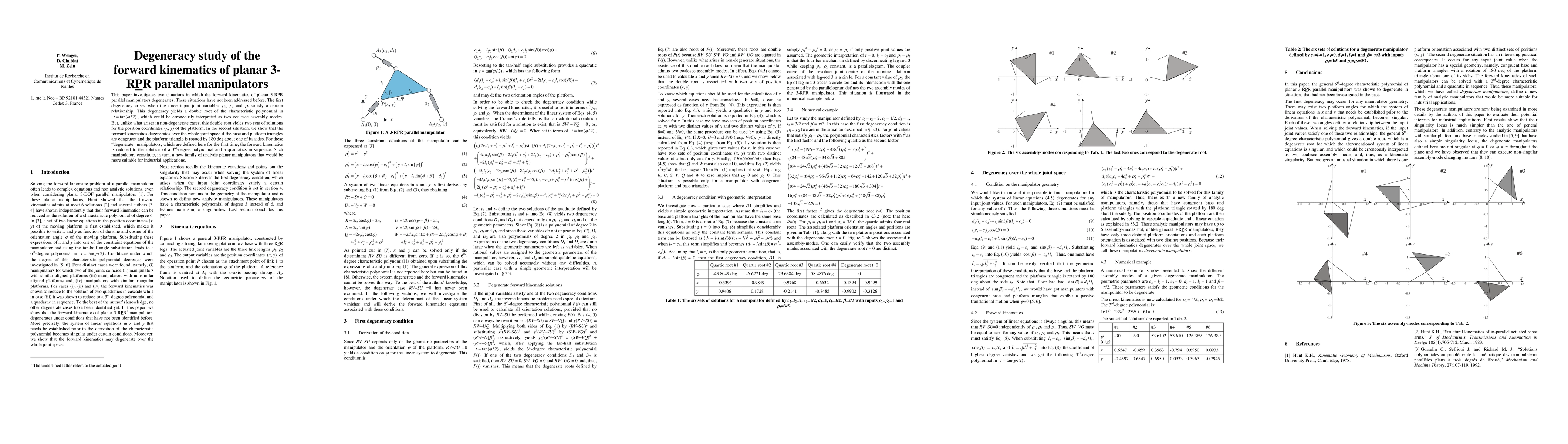 This paper explores two previously unaddressed degeneracies in the forward kinematics of planar 3-RPR parallel manipulators, revealing distinct solution sets and a simplified kinematic model for specific configurations. These findings introduce a new class of analytic planar manipulators potentially beneficial for industrial applications.