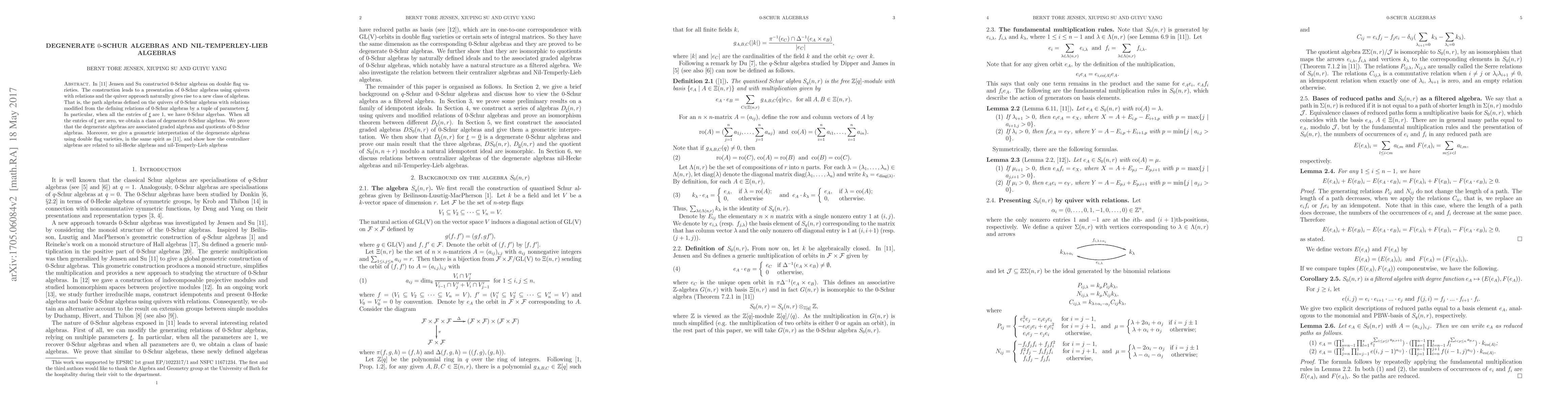 Jensen and Su constructed 0-Schur algebras using quivers with relations, which lead to degenerate 0-Schur algebras when parameters are zero. These degenerate algebras are shown to be associated graded algebras and quotients of 0-Schur algebras with a geometric interpretation via double flag varieties.