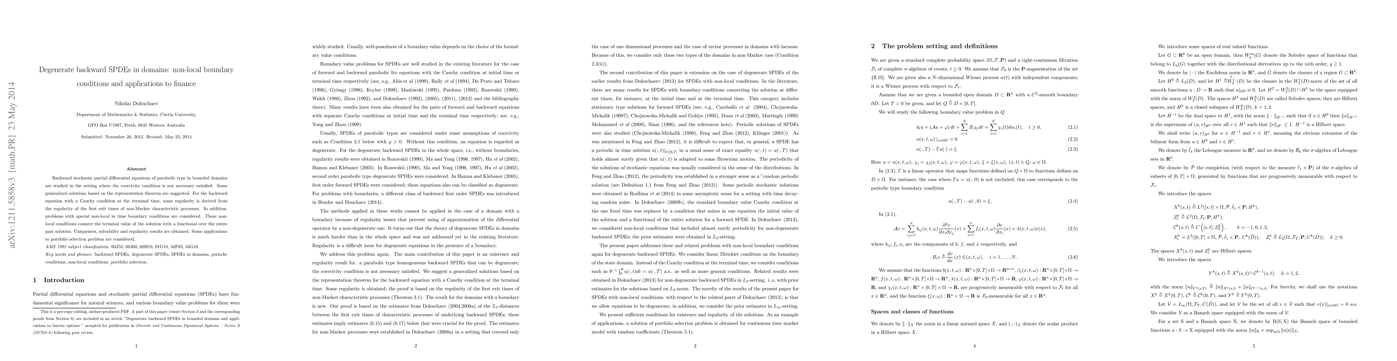 This paper studies degenerate backward SPDEs in bounded domains without the necessity of coercivity, proposing generalized solutions via representation theorems. It explores non-local boundary conditions linking terminal values to past solutions, proving uniqueness, solvability, and regularity, and applies findings to portfolio selection in finance.