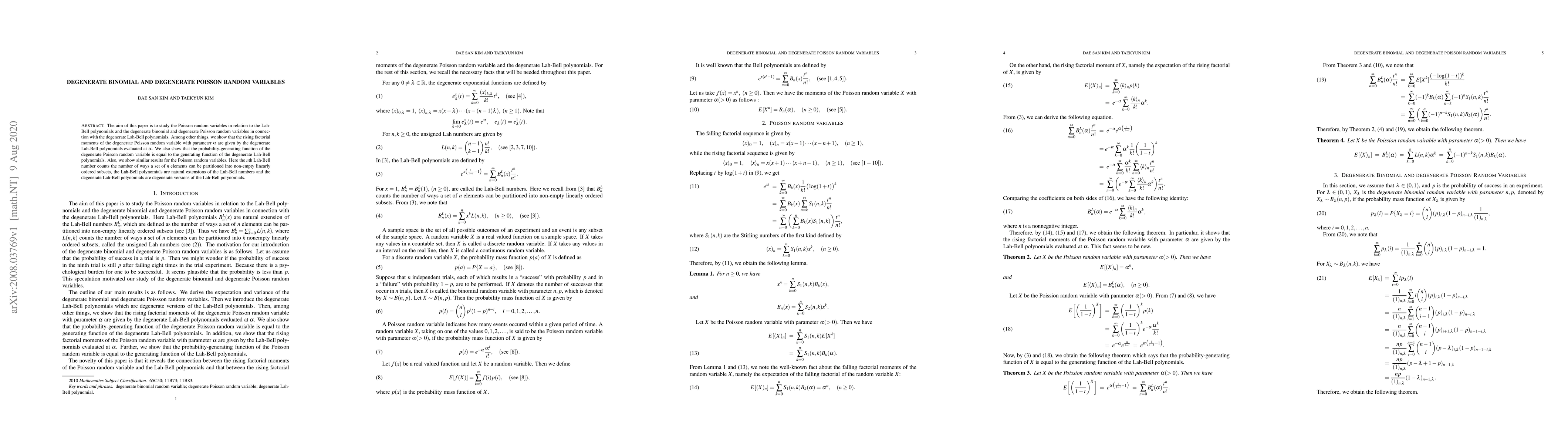 The aim of this paper is to study the Poisson random variables in relation to the Lah-Bell polynomials and the degenerate binomial and degenerate Poisson random variables in connection with the degenerate Lah-Bell polynomials. Among other things, we show that the rising factorial moments of the degenerate Poisson random variable with parameter {\alpha} are given by the degenerate Lah-Bell polynomials evaluated at {\alpha}. We also show that the probability-generating function of the degenerate Poisson random variable is equal to the generating function of the degenerate Lah-Bell polynomials. Also, we show similar results for the Poisson random variables. Here the nth Lah-Bell number counts the number of ways a set of n elements can be partitioned into non-empty linearly ordered subsets, the Lah-Bell polynomials are natural extensions of the Lah-Bell numbers and the degenerate Lah-Bell polynomials are degenerate versions of the Lah-Bell polynomials.
