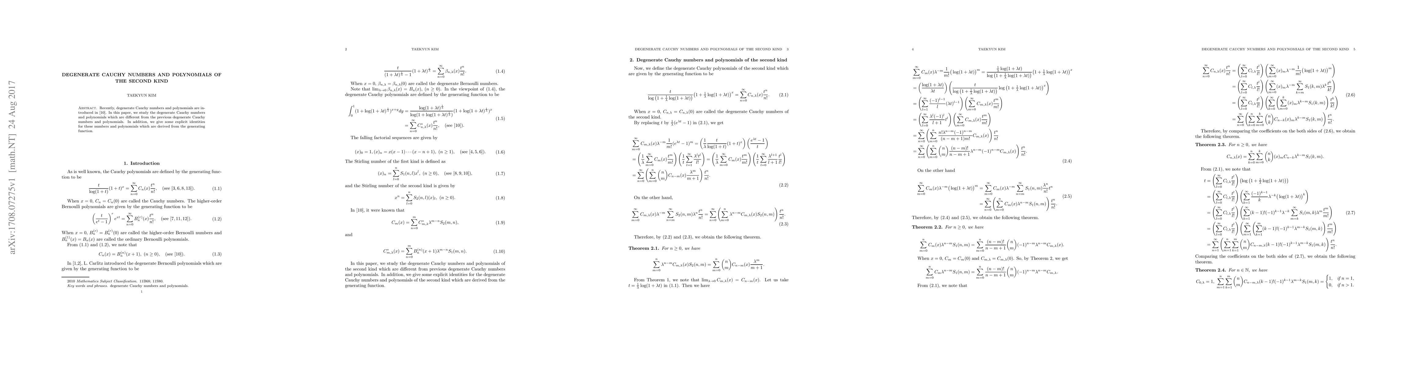 Recently, degenerate Cauchy numbers and polynomials are introduced in [10]. In this paper, we study the degenerate Cauchy numbers and polynomials which are different from the previous degenerate Cauchy numbers and polynomials. In addition, we give some explicit identities for these numbers and polynomials which are derived from the generating function.