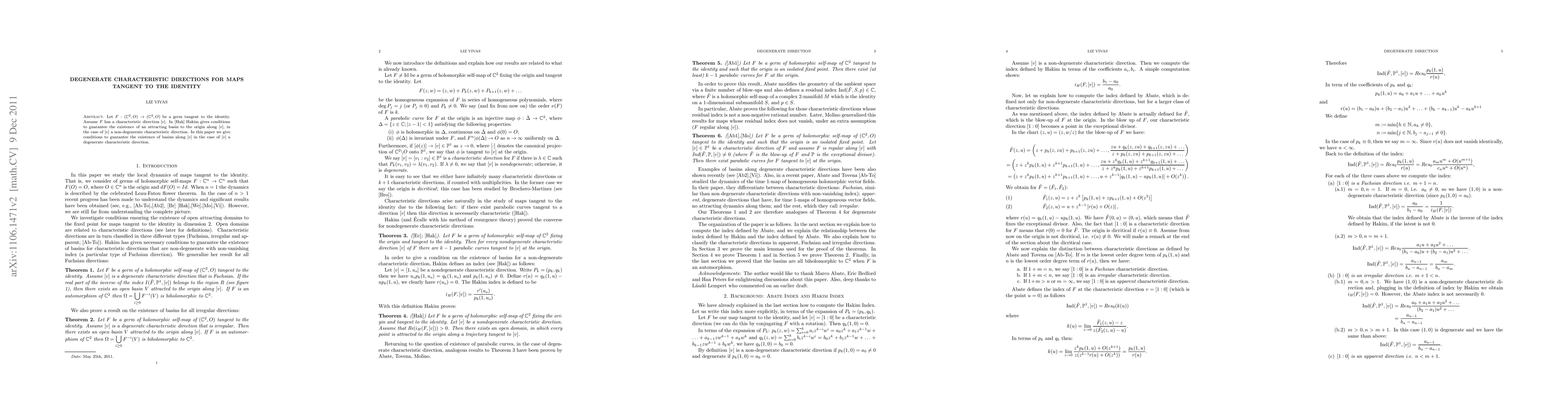 This paper provides conditions for the existence of attracting basins along characteristic directions in maps tangent to the identity, even when those directions are degenerate, improving on earlier work by Hakim.