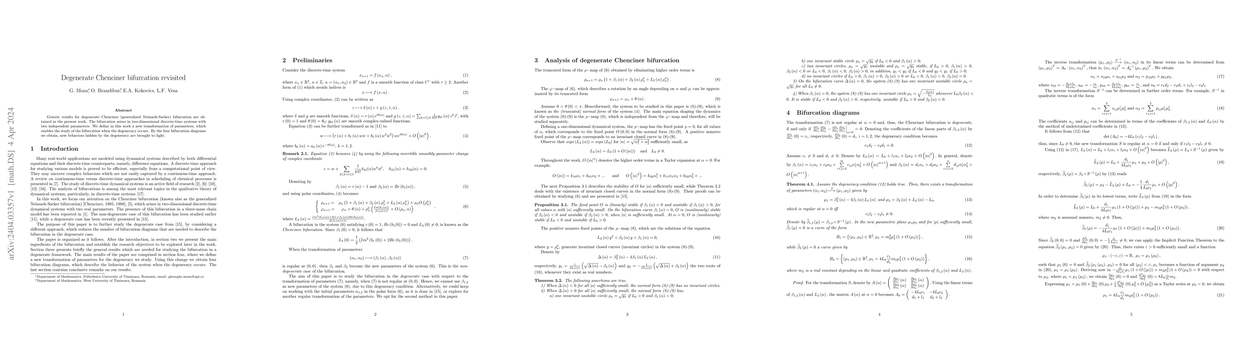 This paper investigates degenerate Chenciner bifurcation in two-dimensional discrete-time systems. A novel parameter transformation is introduced to study the bifurcation under degeneracy, revealing new behaviors through four bifurcation diagrams.