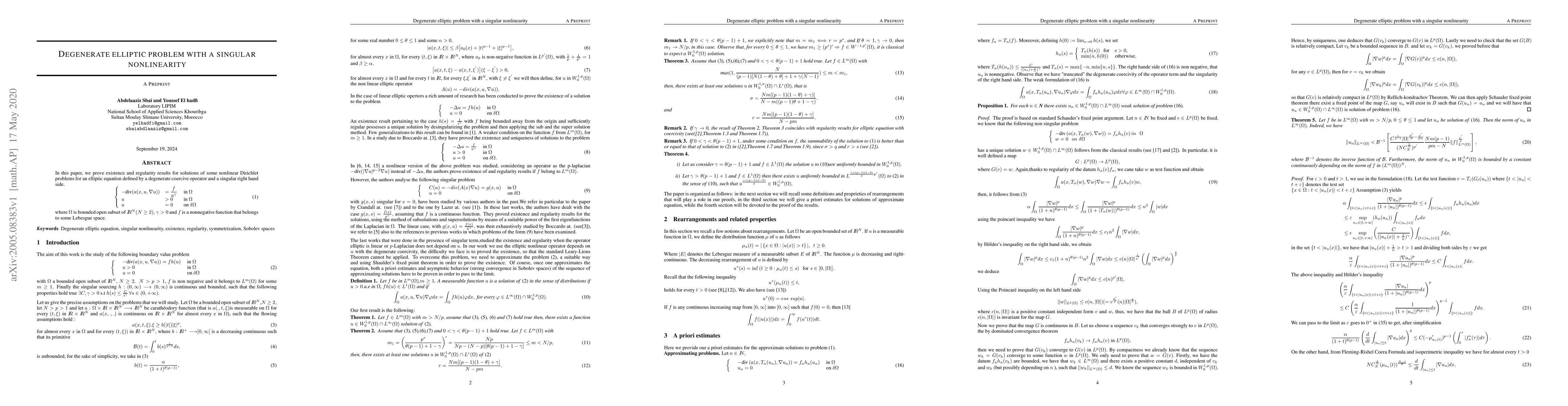 In this paper, we prove existence and regularity results for solutions of some nonlinear Dirichlet problems for an elliptic equation defined by a degenerate coercive operator and a singular right hand side. \begin{equation}\label{01} \left\{ \begin{array}{lll} -\displaystyle\mbox{div}( a(x,u,\nabla u))&=\displaystyle\frac{f}{u^{\gamma}} & \mbox{ in } \Omega \\ u&>0 &\mbox{ in }\Omega \\ u&=0 &\mbox{ on } \delta\Omega \end{array} \right. \end{equation} where $\Omega $ is bounded open subset of $I\!\!R^{N}(N\geq2),$ $\gamma>0$ and $ f$ is a nonnegative function that belongs to some Lebesgue space.