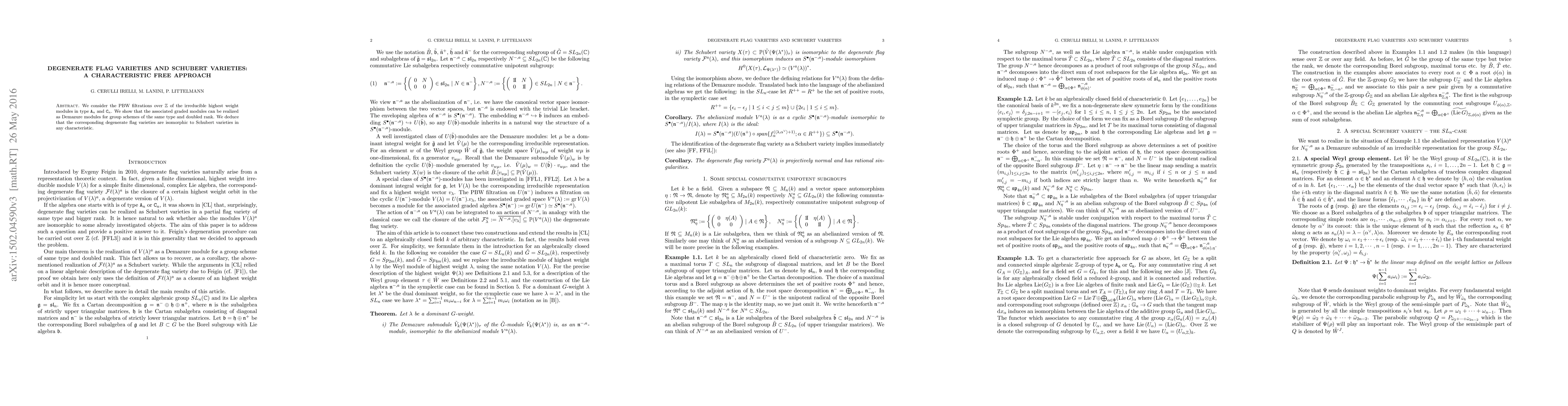 This paper proves that the PBW filtrations of irreducible highest weight modules in type A and C over the integers correspond to Demazure modules for group schemes of doubled rank, leading to the conclusion that degenerate flag varieties are isomorphic to Schubert varieties in any characteristic.