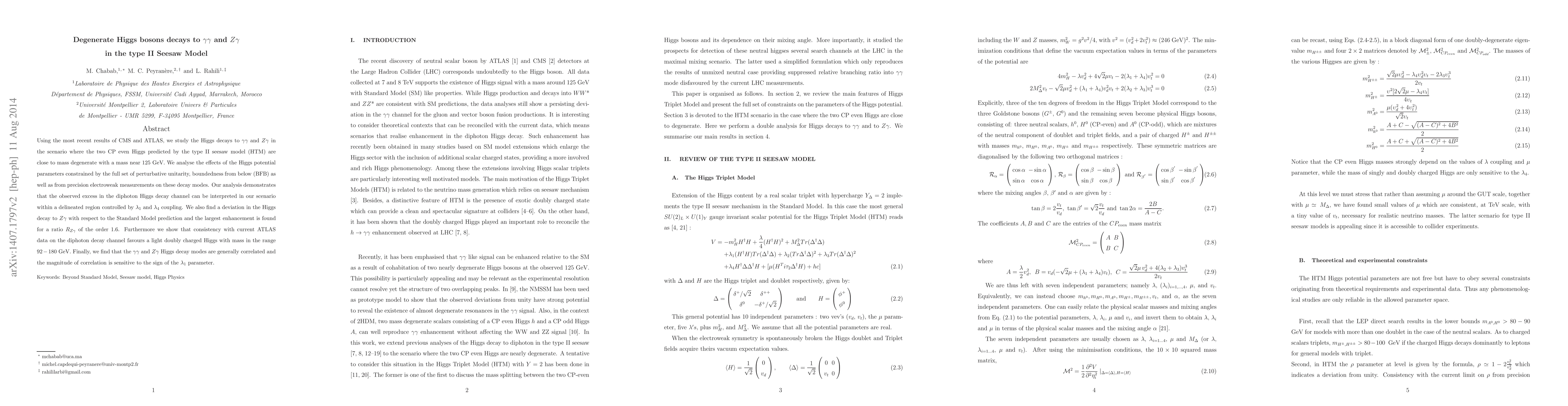 Using the most recent results of CMS and ATLAS, we study the Higgs decays to $\gamma\gamma$ and $Z\gamma$ in the scenario where the two CP even Higgs predicted by the type II seesaw model (HTM) are close to mass degenerate with a mass near $125$ GeV. We analyse the effects of the Higgs potential parameters constrained by the full set of perturbative unitarity, boundedness from below (BFB) as well as from precision electroweak measurements on these decay modes. Our analysis demonstrates that the observed excess in the diphoton Higgs decay channel can be interpreted in our scenario within a delineated region controlled by $\lambda_{1}$ and $\lambda_{4}$ coupling. We also find a deviation in the Higgs decay to $Z\gamma$ with respect to the Standard Model prediction and the largest enhancement is found for a ratio $R_{Z\gamma}$ of the order $1.6$. Furthermore we show that consistency with current ATLAS data on the diphoton decay channel favours a light doubly charged Higgs with mass in the range $92 - 180$~GeV. Finally, we find that the $\gamma\gamma$ and $Z \gamma$ Higgs decay modes are generally correlated and the magnitude of correlation is sensitive to the sign of the $\lambda_{1}$ parameter.