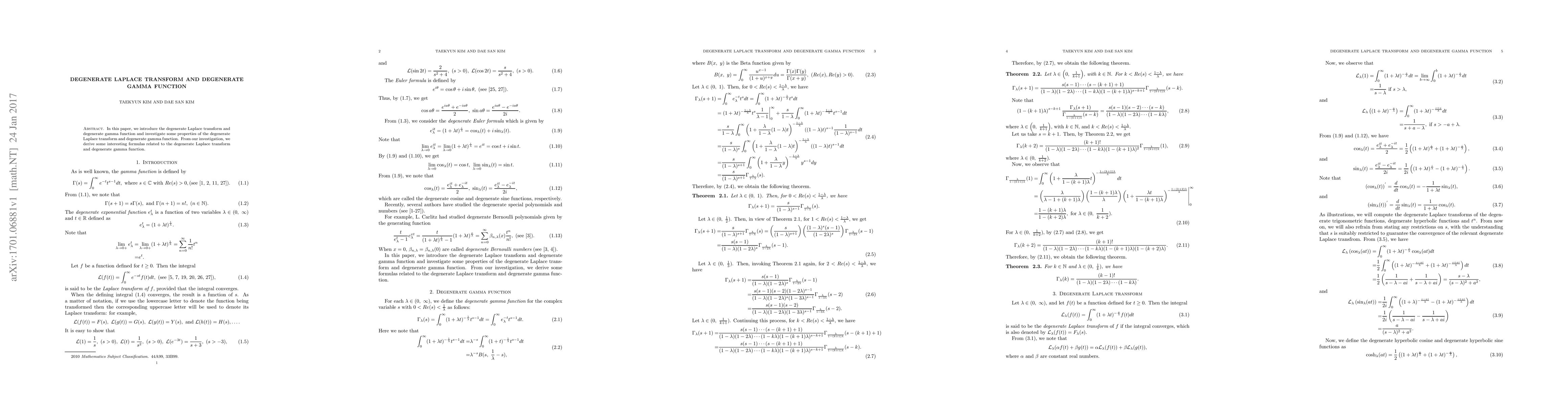 This paper introduces the degenerate Laplace transform and degenerate gamma function, explores their properties, and derives interesting formulas related to these mathematical constructs. The study provides insights into the behavior and applications of these advanced mathematical tools.