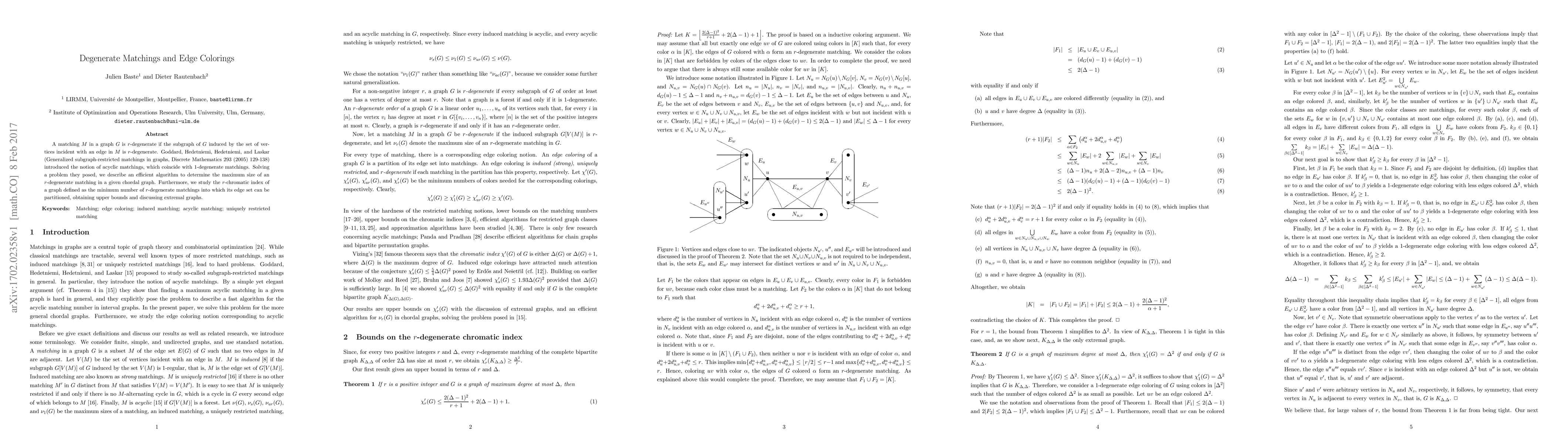 This paper presents an efficient algorithm to find the largest $r$-degenerate matching in chordal graphs and explores the $r$-chromatic index, which denotes the minimum number of $r$-degenerate matchings needed to partition a graph's edge set, along with upper bounds and extremal cases.