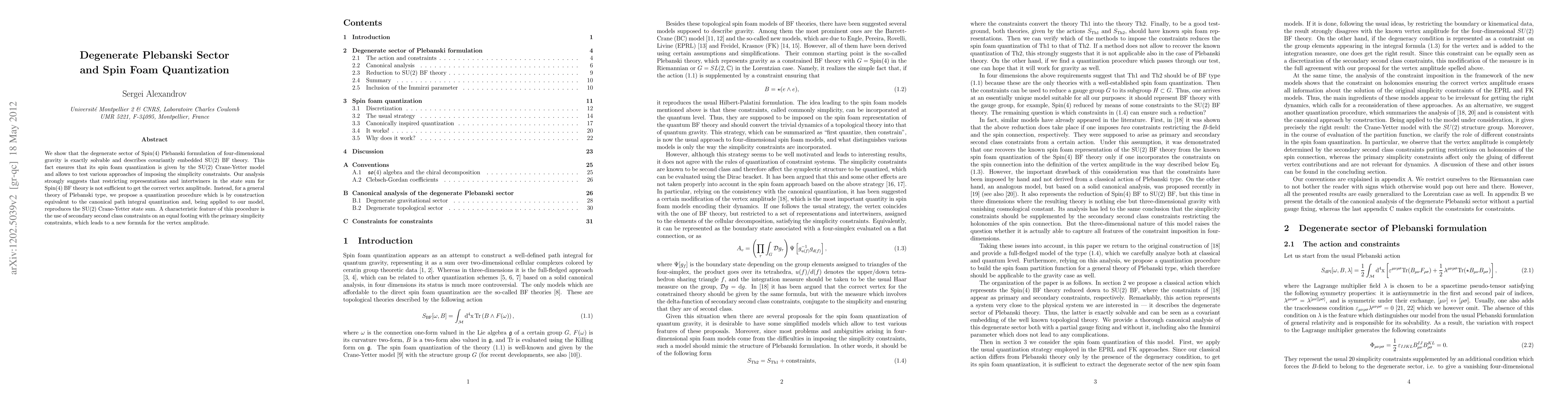 This research demonstrates that the degenerate sector of the Spin(4) Plebanski formulation of four-dimensional gravity can be exactly solved, describing covariantly embedded SU(2) BF theory. The authors propose a novel quantization procedure for such Plebanski-type theories, which, when applied to their model, reproduces the SU(2) Crane-Yetter state sum and involves secondary second class constraints.
