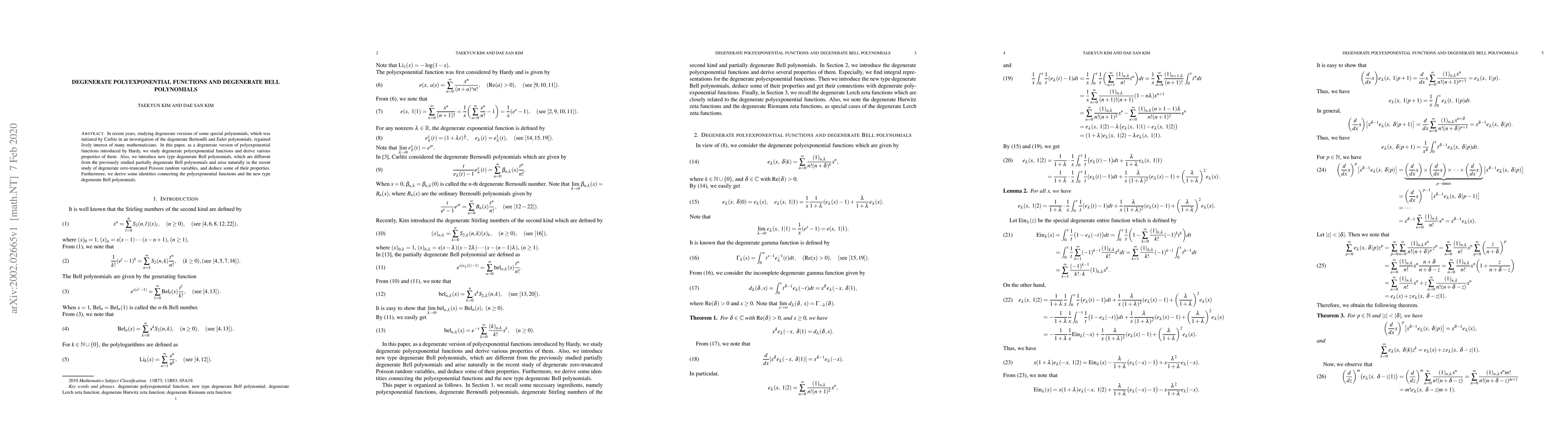 This paper investigates degenerate polyexponential functions and introduces a new type of degenerate Bell polynomials, distinct from previously studied partially degenerate Bell polynomials. It derives properties of these functions and polynomials and establishes identities linking them.