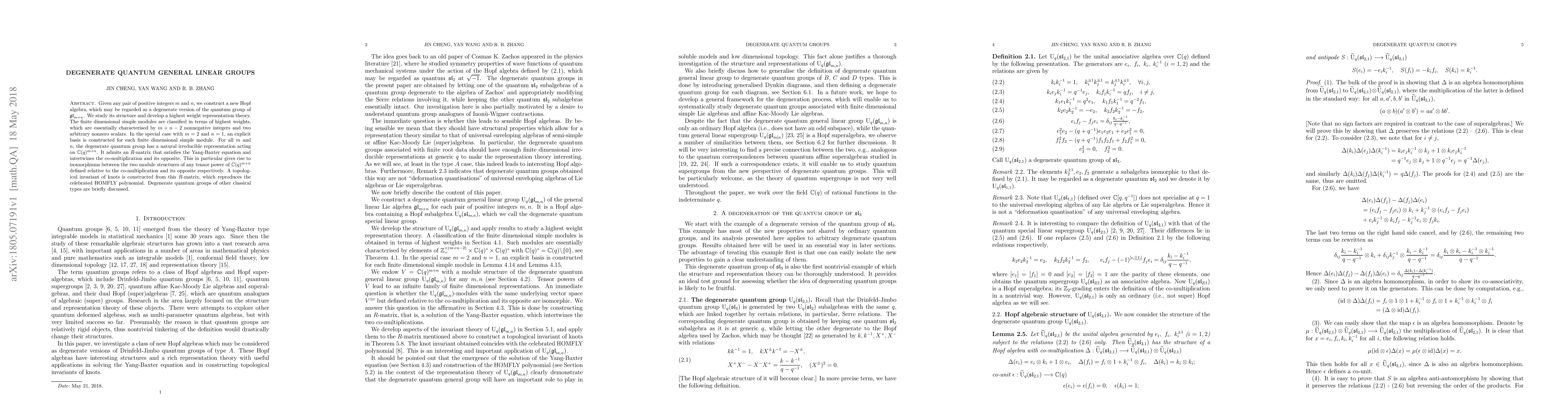 Given any pair of positive integers m and n, we construct a new Hopf algebra, which may be regarded as a degenerate version of the quantum group of gl(m+n). We study its structure and develop a highest weight representation theory. The finite dimensional simple modules are classified in terms of highest weights, which are essentially characterised by m+n-2 nonnegative integers and two arbitrary nonzero scalars. In the special case with m=2 and n=1, an explicit basis is constructed for each finite dimensional simple module. For all m and n, the degenerate quantum group has a natural irreducible representation acting on C(q)^(m+n). It admits an R-matrix that satisfies the Yang-Baxter equation and intertwines the co-multiplication and its opposite. This in particular gives rise to isomorphisms between the two module structures of any tensor power of C(q)^(m+n) defined relative to the co-multiplication and its opposite respectively. A topological invariant of knots is constructed from this R-matrix, which reproduces the celebrated HOMFLY polynomial. Degenerate quantum groups of other classical types are briefly discussed.