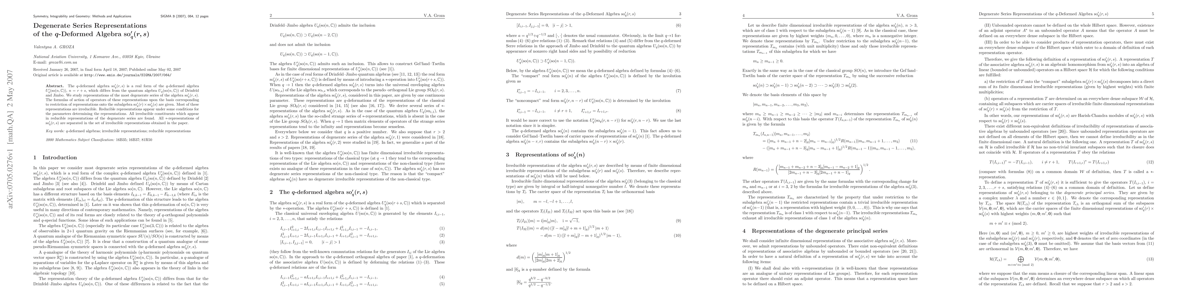 This paper investigates the most degenerate series representations of the $q$-deformed algebra ${\rm so}'_q(r,s)$, providing formulas for operator actions on basis elements. It identifies all irreducible constituents and separates $*$-representations within the set of irreducible representations obtained.