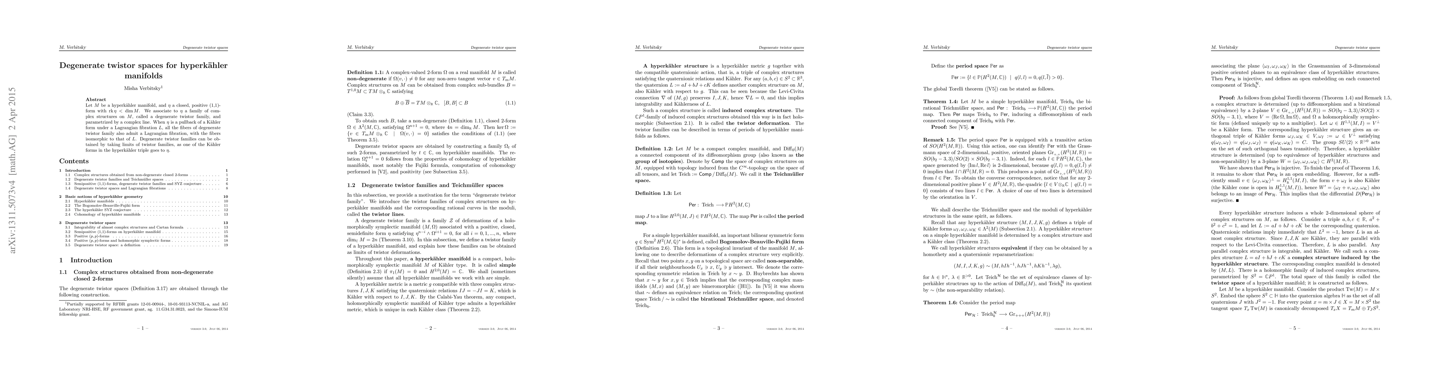 This paper studies hyperkähler manifolds with degenerate twistor spaces, associating a family of complex structures to a degenerate, positive (1,1)-form. When the form is a pullback of a Kähler form under a Lagrangian fibration, the resulting degenerate twistor family retains Lagrangian fibrations on its fibers. The degenerate twistor families can be derived by limiting regular twistor families as one of the Kähler components approaches the degenerate form.