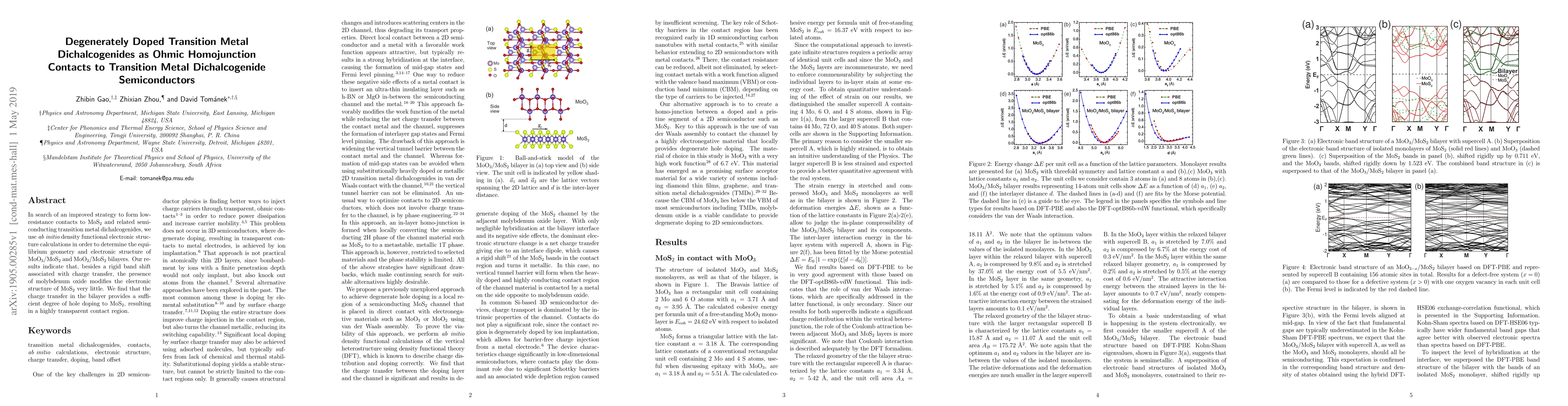 In search of an improved strategy to form low resistance contacts to MoS2 and related semiconducting transition metal dichalcogenides, we use ab initio density functional electronic structure calculations in order to determine the equilibrium geometry and electronic structure of MoO3/MoS2 and MoO2/MoS2 bilayers. Our results indicate that, besides a rigid band shift associated with charge transfer, the presence of molybdenum oxide modifies the electronic structure of MoS2 very little. We find that the charge transfer in the bilayer provides a sufficient degree of hole doping to MoS2, resulting in a highly transparent contact region.