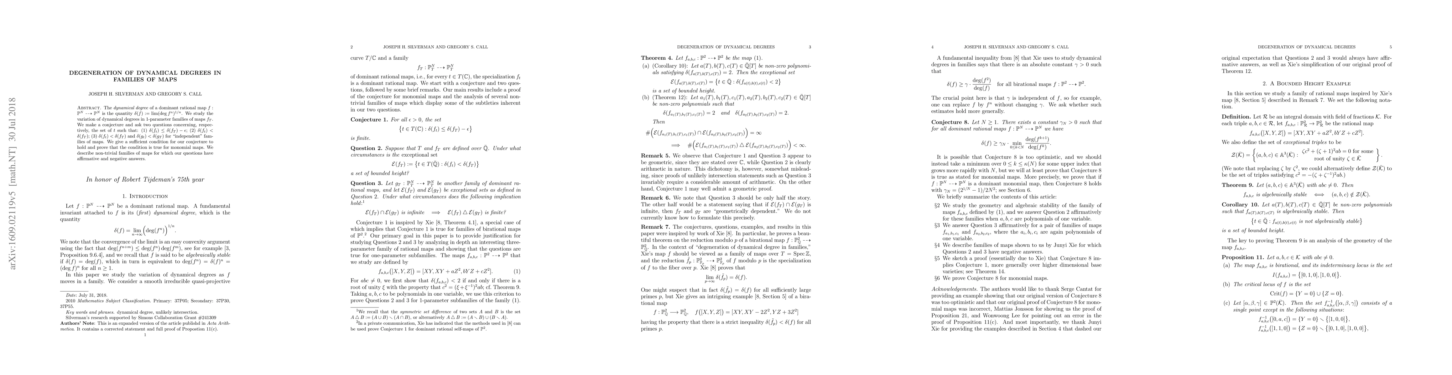 The dynamical degree of a dominant rational map $f:\mathbb{P}^N\rightarrow\mathbb{P}^N$ is the quantity $\delta(f):=\lim(\text{deg} f^n)^{1/n}$. We study the variation of dynamical degrees in 1-parameter families of maps $f_T$. We make a conjecture and ask two questions concerning, respectively, the set of $t$ such that: (1) $\delta(f_t)\le\delta(f_T)-\epsilon$; (2) $\delta(f_t)<\delta(f_T)$; (3) $\delta(f_t)<\delta(f_T)$ and $\delta(g_t)<\delta(g_T)$ for "independent" families of maps. We give a sufficient condition for our conjecture to hold and prove that it is true for monomial maps. We describe non-trivial families of maps for which our questions have affirmative and negative answers.