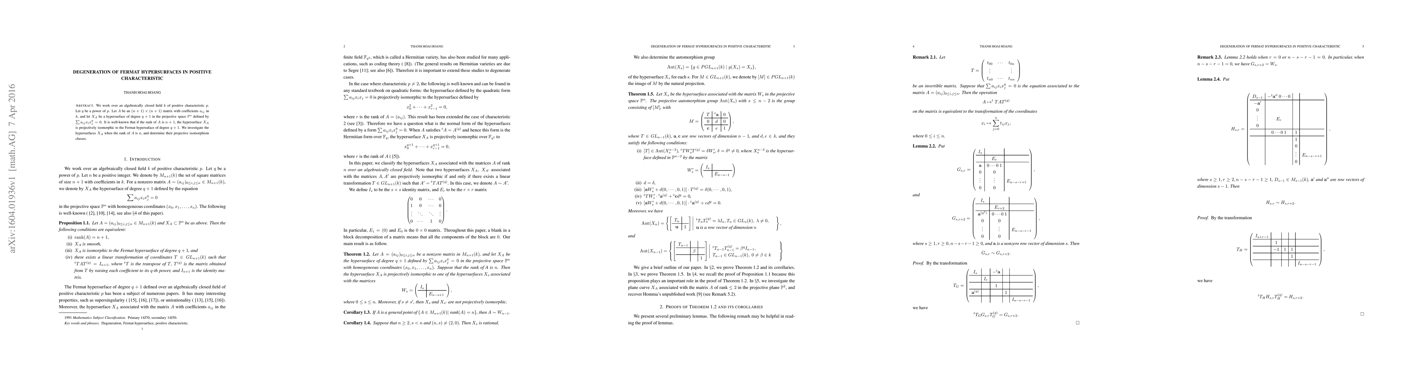 Researchers investigated Fermat hypersurfaces in positive characteristic, determining their projective isomorphism classes to shed light on degeneration patterns.